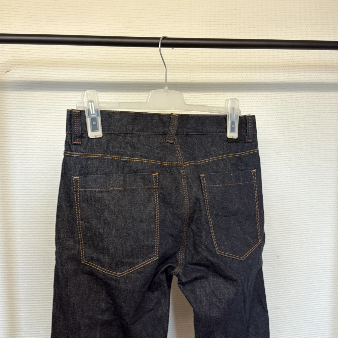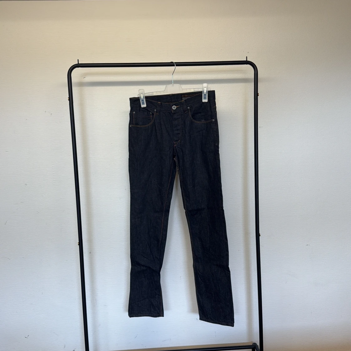 Snygga mörkblå jeans från Dunderdon med klassisk femficksdesign och kontrastsömmar. Jeansen har rak passform och är tillverkade i robust denim med orange detaljer vid fickor och midja. Perfekta för dig som gillar stilrena och tidlösa jeans.