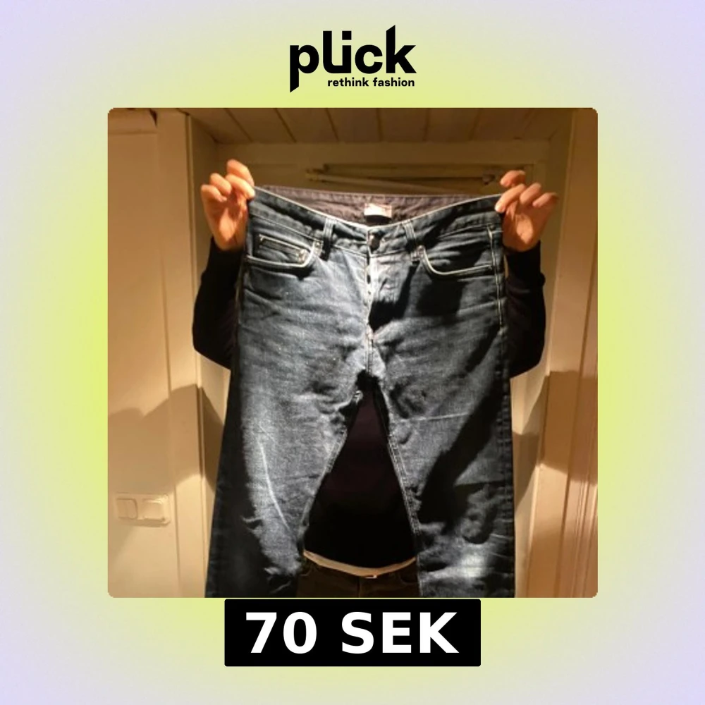 Snygga mörkblå jeans från Filippa K med klassisk femficksdesign och raka ben. Jeansen har kontrastsömmar, knappstängning och är tillverkade i slitstarkt denim. Storleken är 31/36 använda med uppvikning, se bild 3.