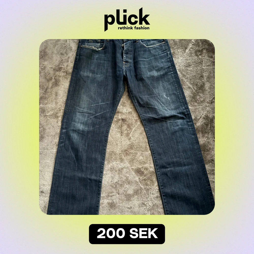 Säljer ett par snygga mörkblå jeans från G-Star RAW. De har en klassisk straight fit och är perfekta för både vardag och fest. Jeansen är i mycket bra skick och har en cool tvättad look. Perfekta för höst och vår!