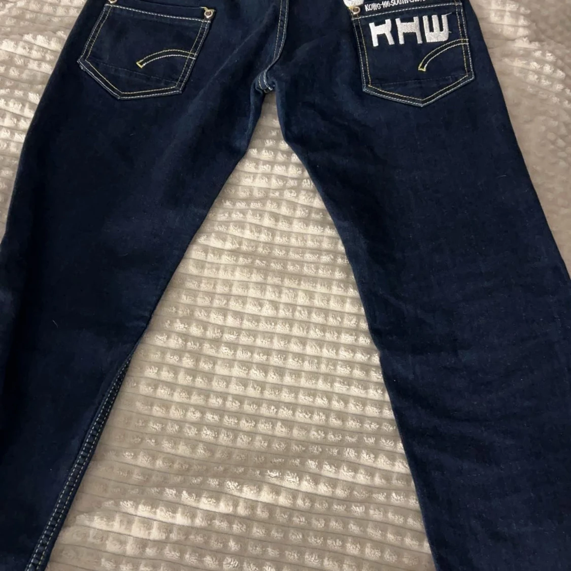Säljer ett par snygga mörkblå jeans från G-Star RAW. Midjemått: 40 och Innerbenslängd: 82 Säljer då dom inte kommer till användning och tycker dom för fina för att inte användas. Pris kan diskuteras.