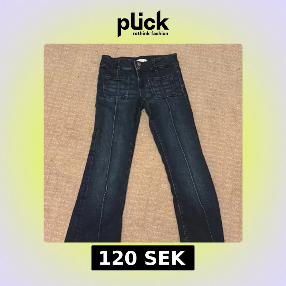 Snygga mörkblå jeans från Gina Tricot med raka ben och markerade sömmar framtill. Hög midja, dubbla knappar och stora fickor framtill ger en cool look. Klassisk femficksmodell i stretchig denim som sitter skönt hela dagen.