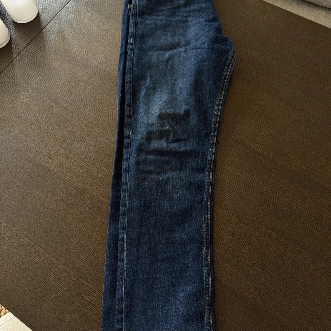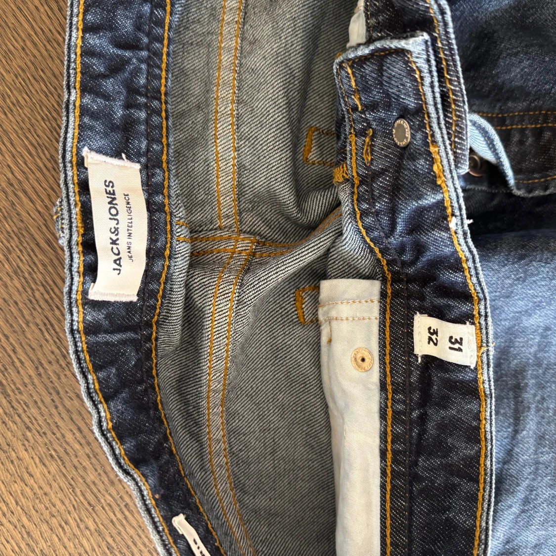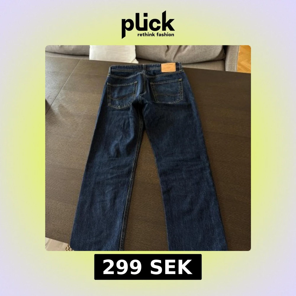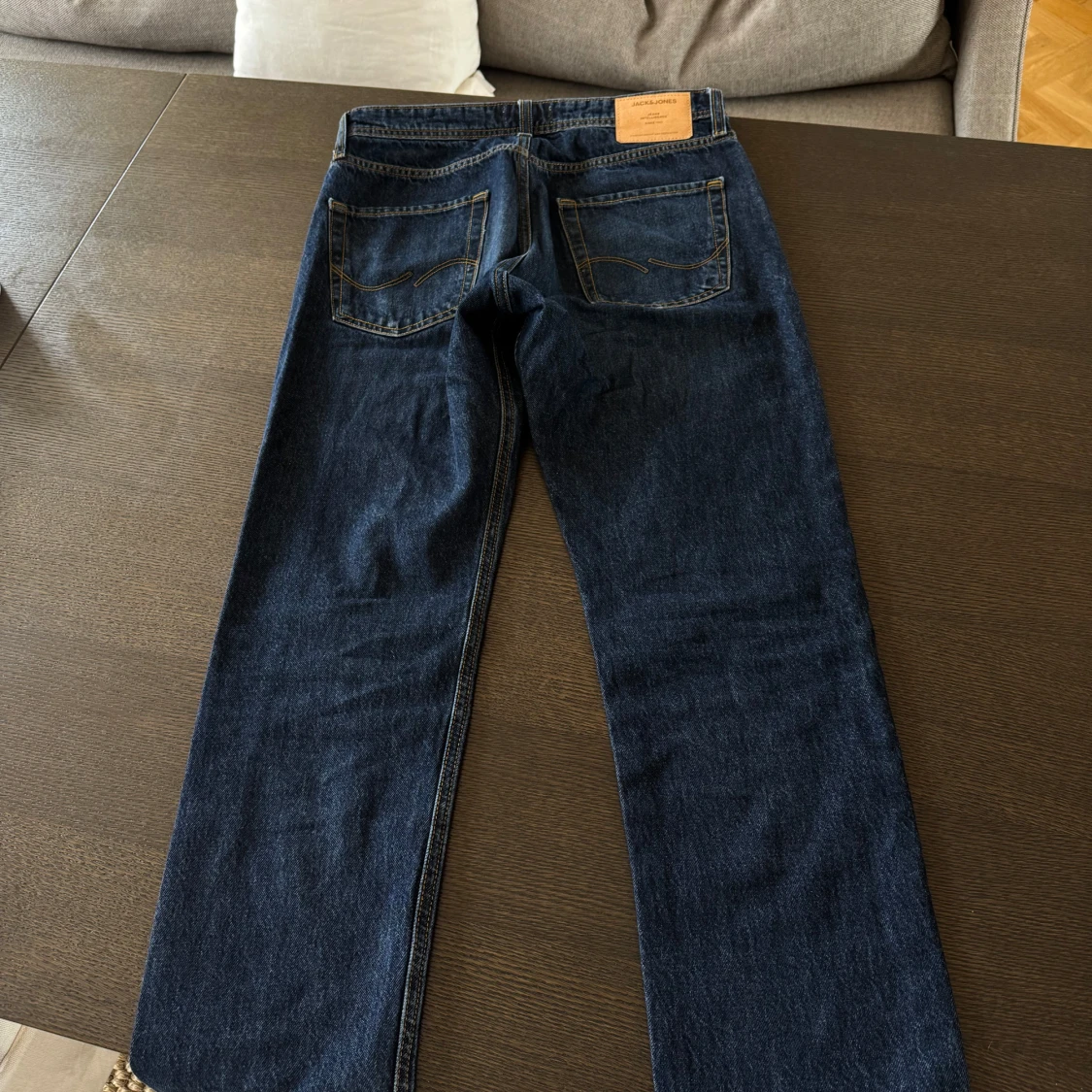 Säljer ett par mörkblå jeans från Jack & Jones. För dig som vill ha en par mörkblåa och raka jeans som varit använda några enstaka gånger. Inga täcken på slitag eller användning
