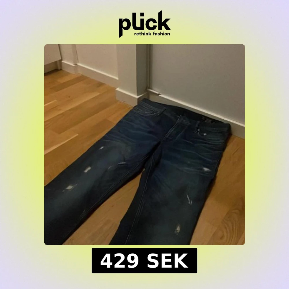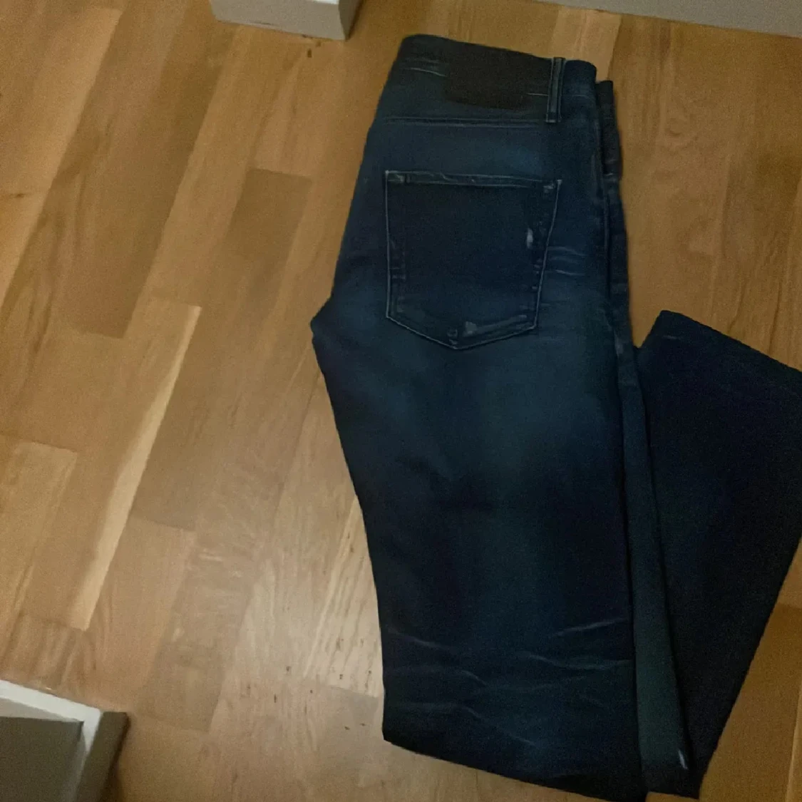 Snygga mörkblå jeans från Jack & Jones med en klassisk femficksdesign. Jeansen har en lätt slitning för en trendig look och är perfekta för vardagsbruk. De har en normal passform och är tillverkade i ett bekvämt denimtyg.
