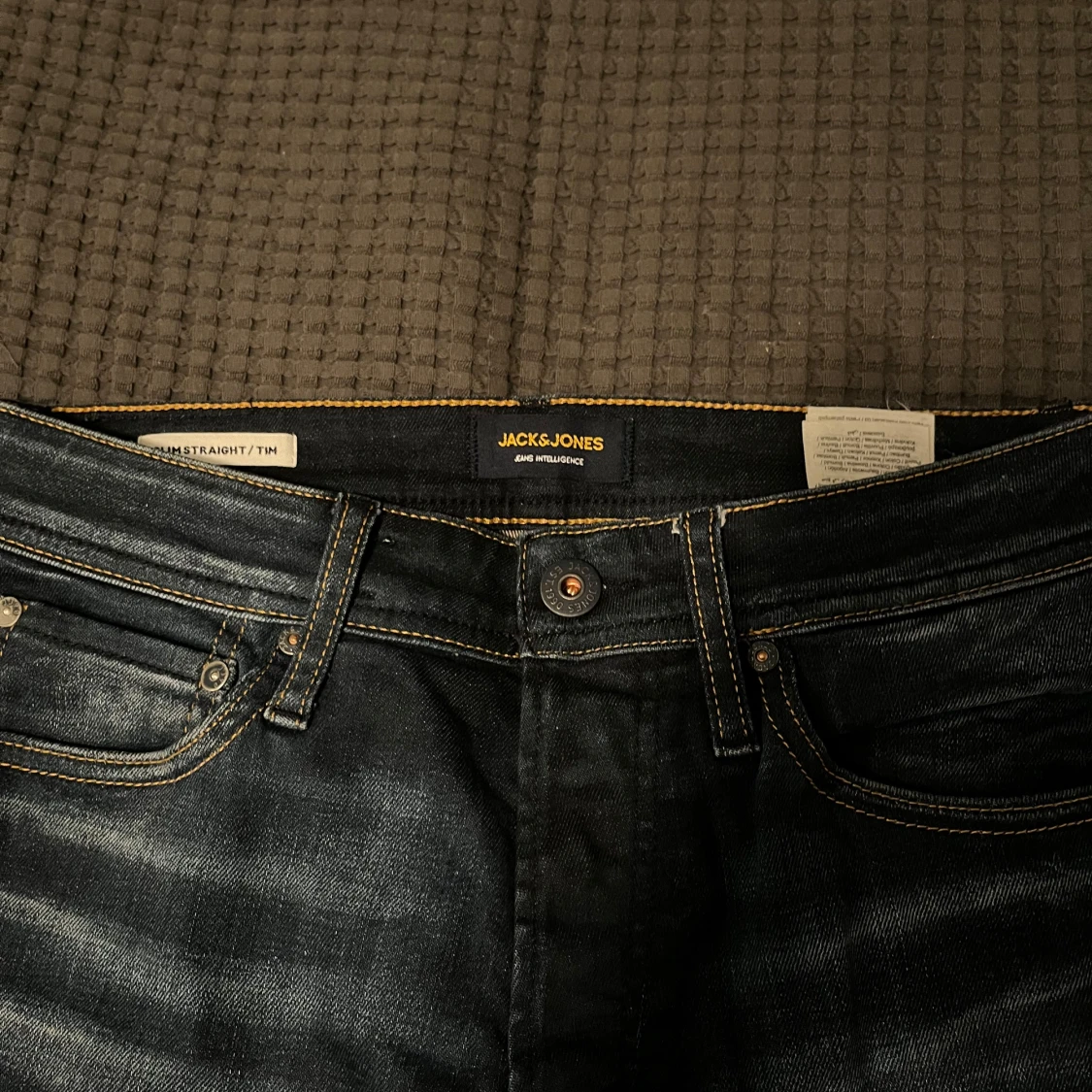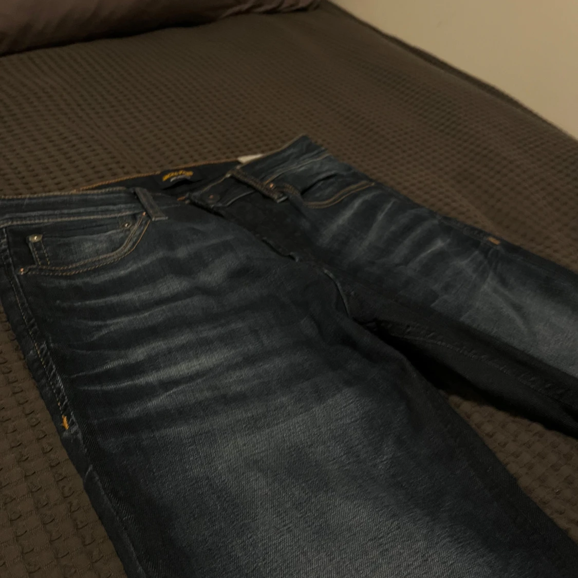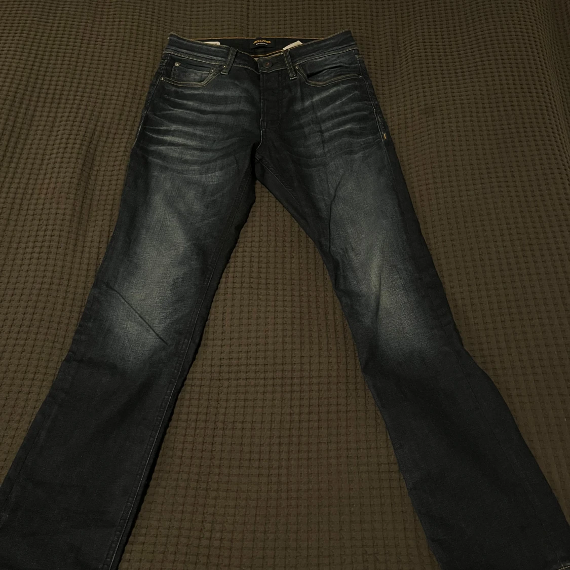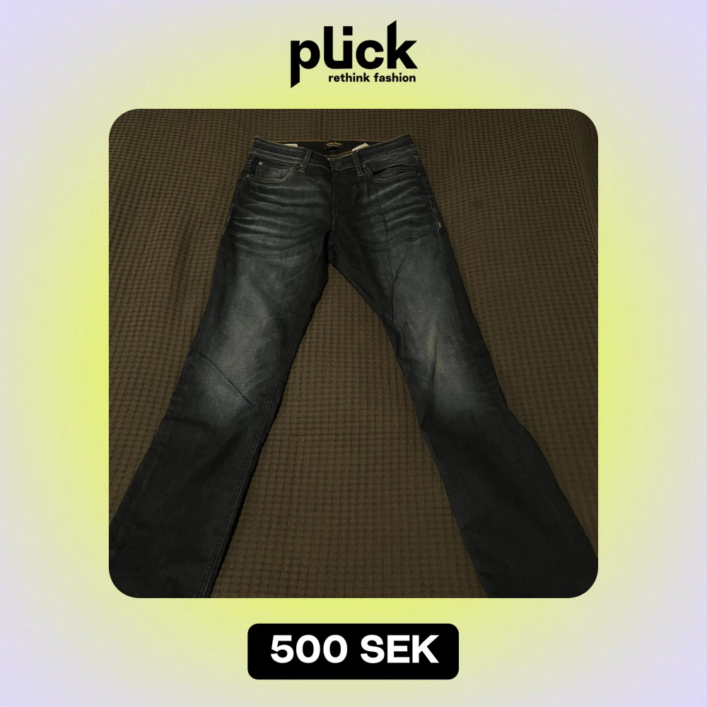 Säljer ett par snygga mörkblå flared jeans från Jack & Jones. De har en klassisk straight fit och är i mycket bra skick. Perfekta för både vardag och fest! 🕺❗️Kom med prisförslag❗️