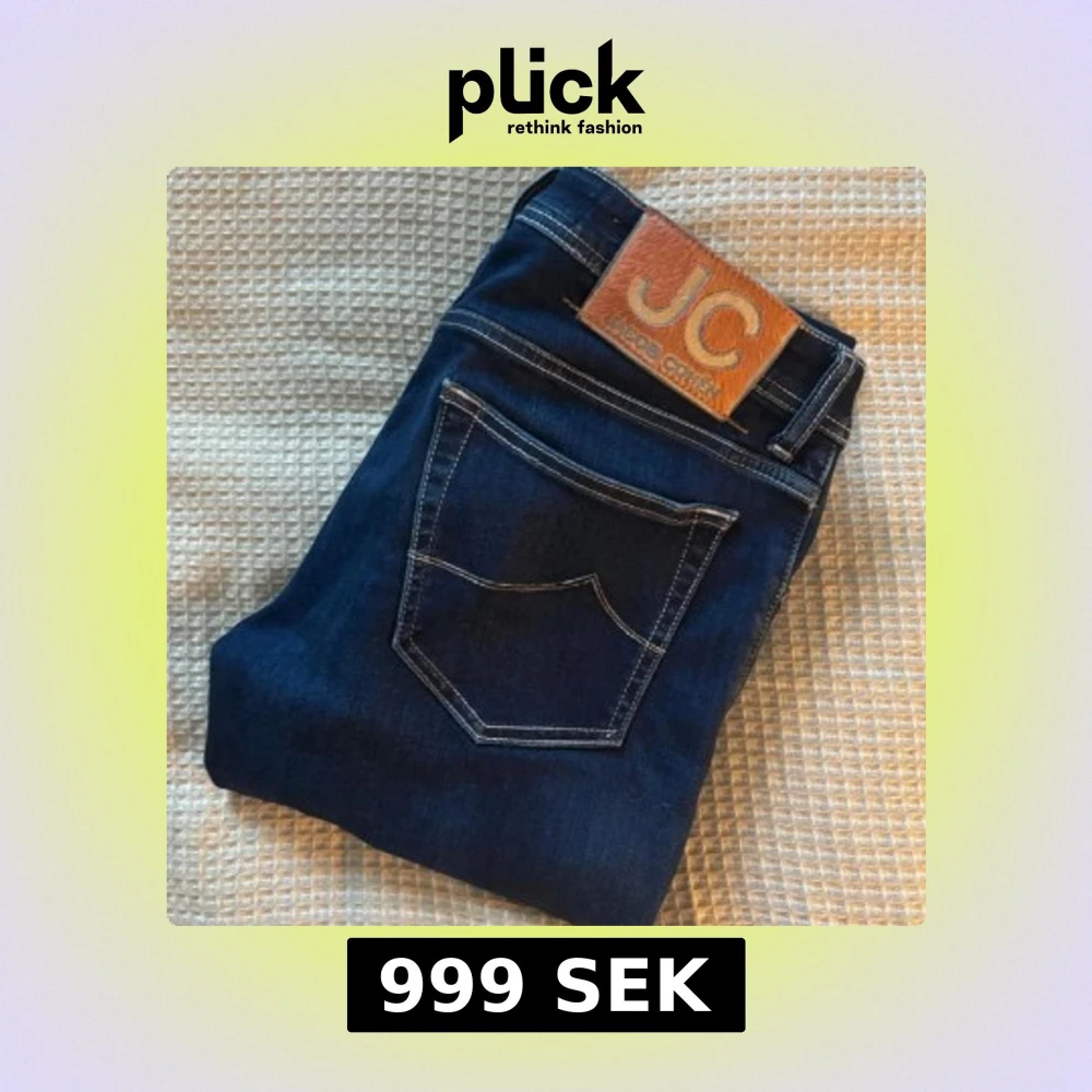 Snygga mörkblå jeans från Jacob Cohën med klassisk femficksdesign och kontrastsömmar. Byxorna har en läderpatch med logga bak och gulddetaljer vid gylfen. Perfekta för dig som gillar stilrena jeans med exklusiv känsla. Skriv för frågor