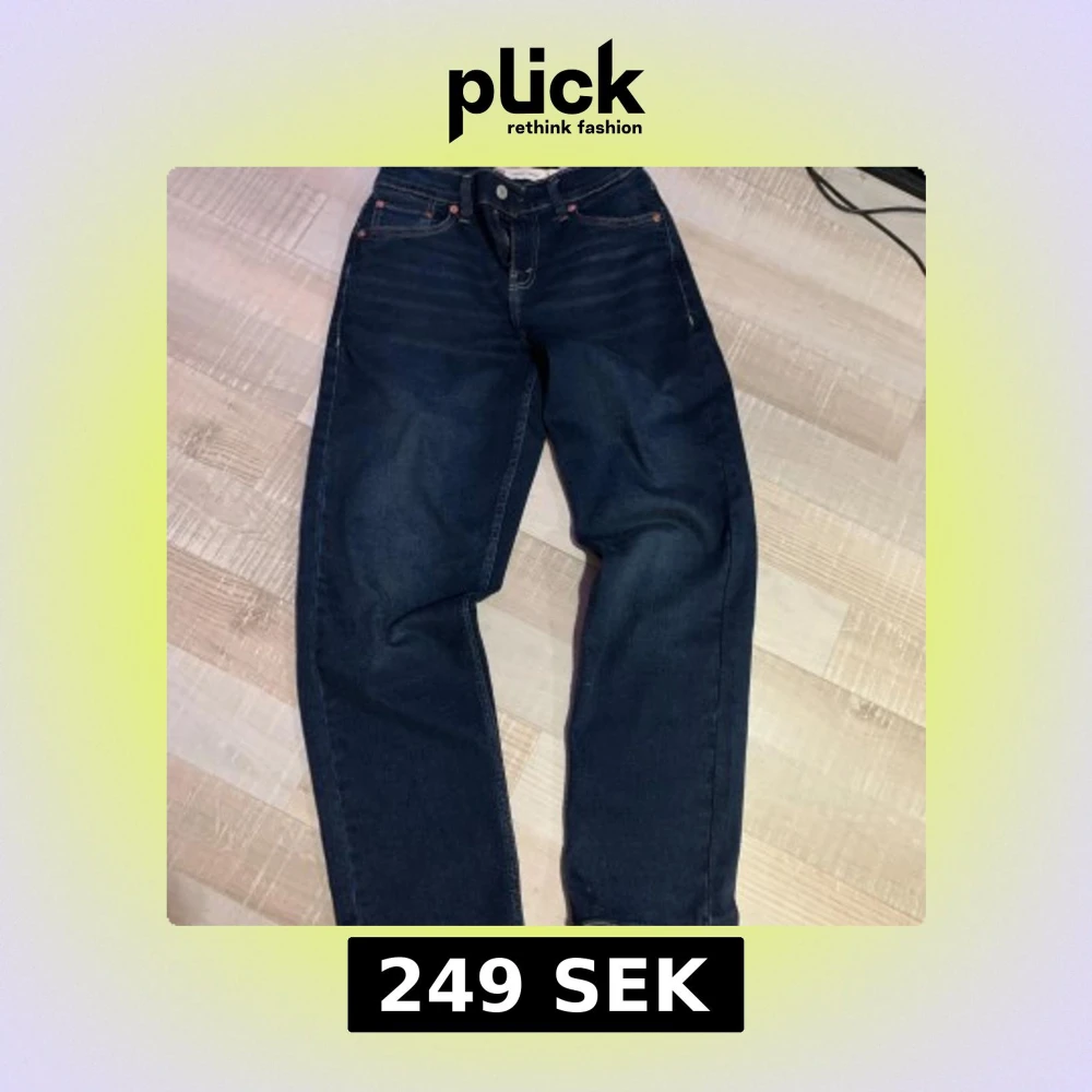 Säljer ett par mörkblå jeans från Levi's med en loose taper passform. De har klassisk femficksdesign och knappgylf. Perfekta för en avslappnad stil.