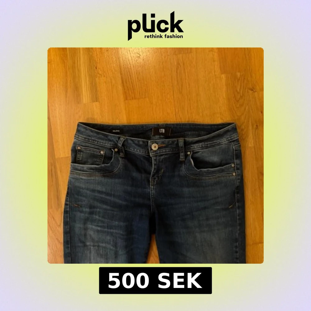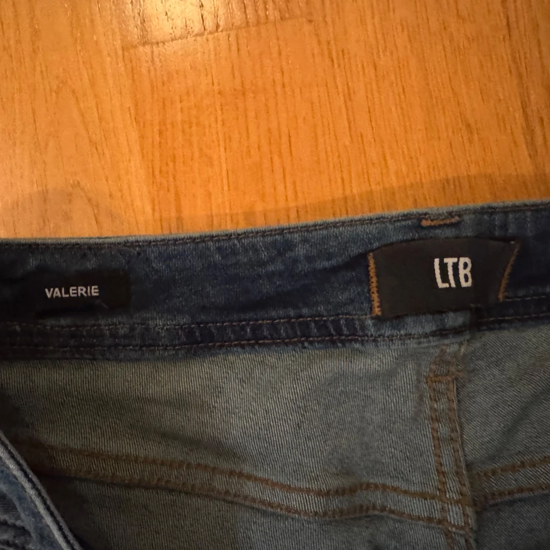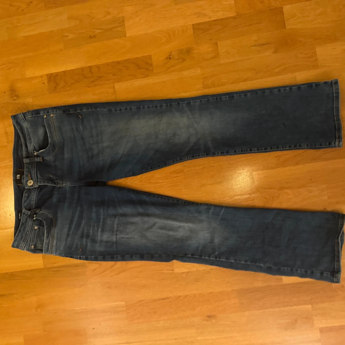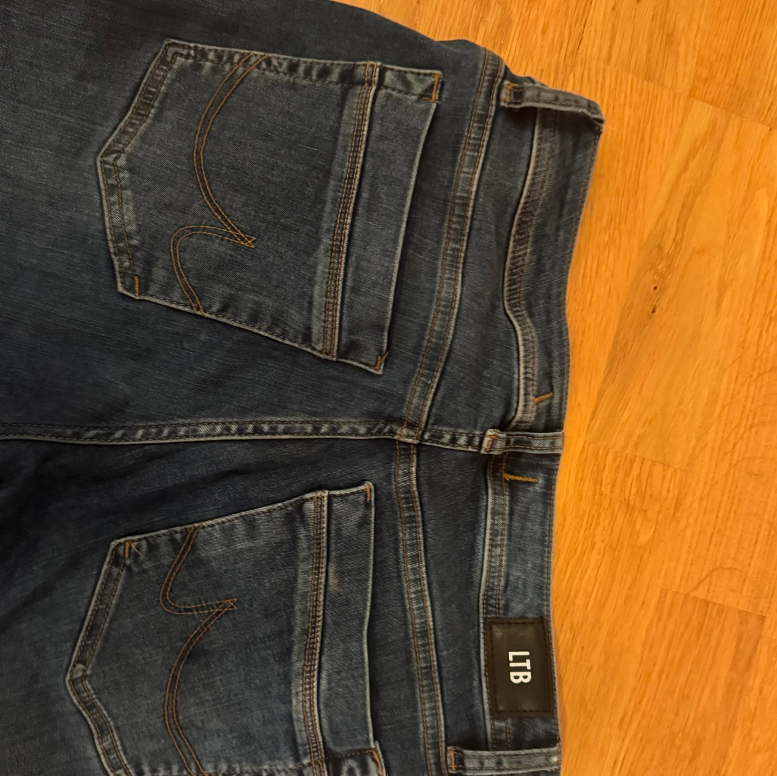 Snygga mörkblå lågmidjade jeans från LTB, modell Valerie. Klassisk femficksdesign med orangea sömmar och raka ben/bootcut. Jeansen har en lätt tvättad look. Är i storlek 30x30 (passar M-L).