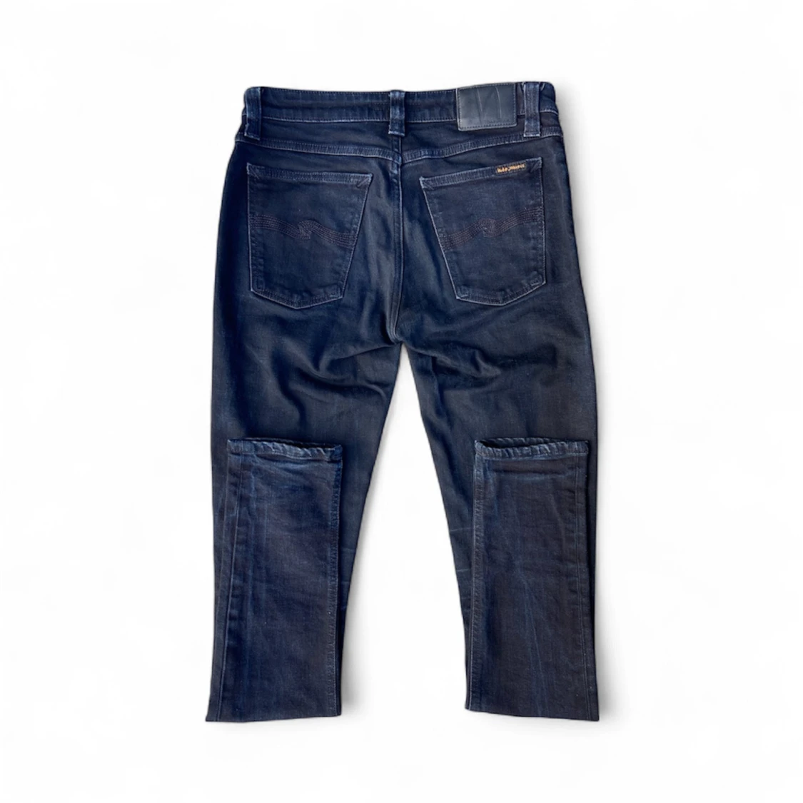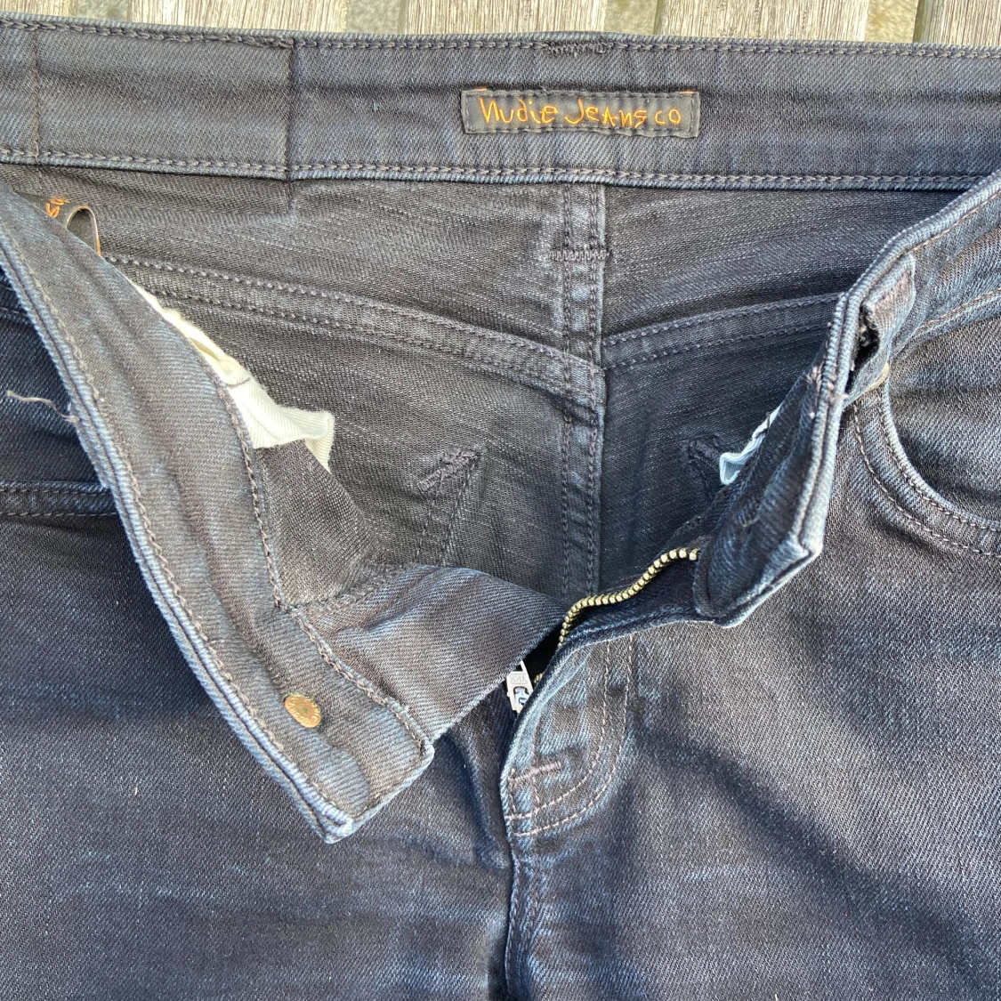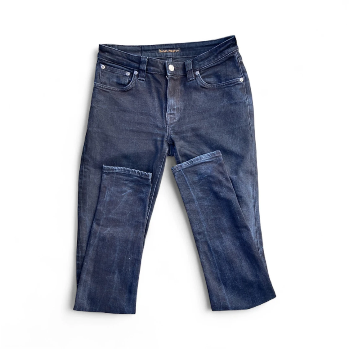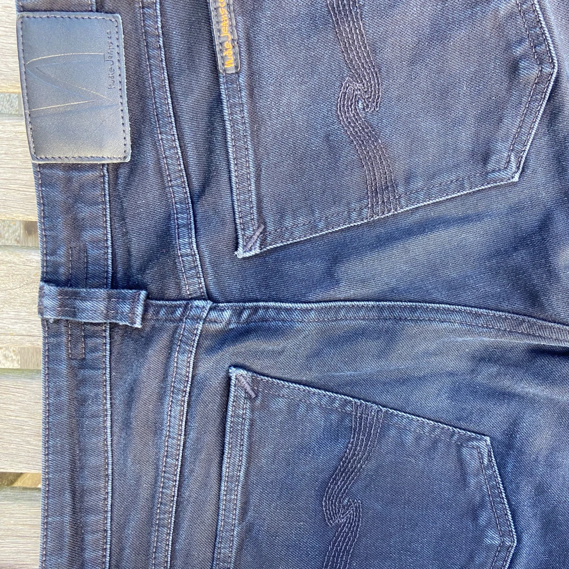 Snygga mörkblå jeans från Nudie Jeans med klassisk femficksdesign och subtila kontrastsömmar på bakfickorna. Jeansen har rak passform, dragkedja och är tillverkade i slitstarkt denimtyg. Perfekta för en avslappnad och stilren look.