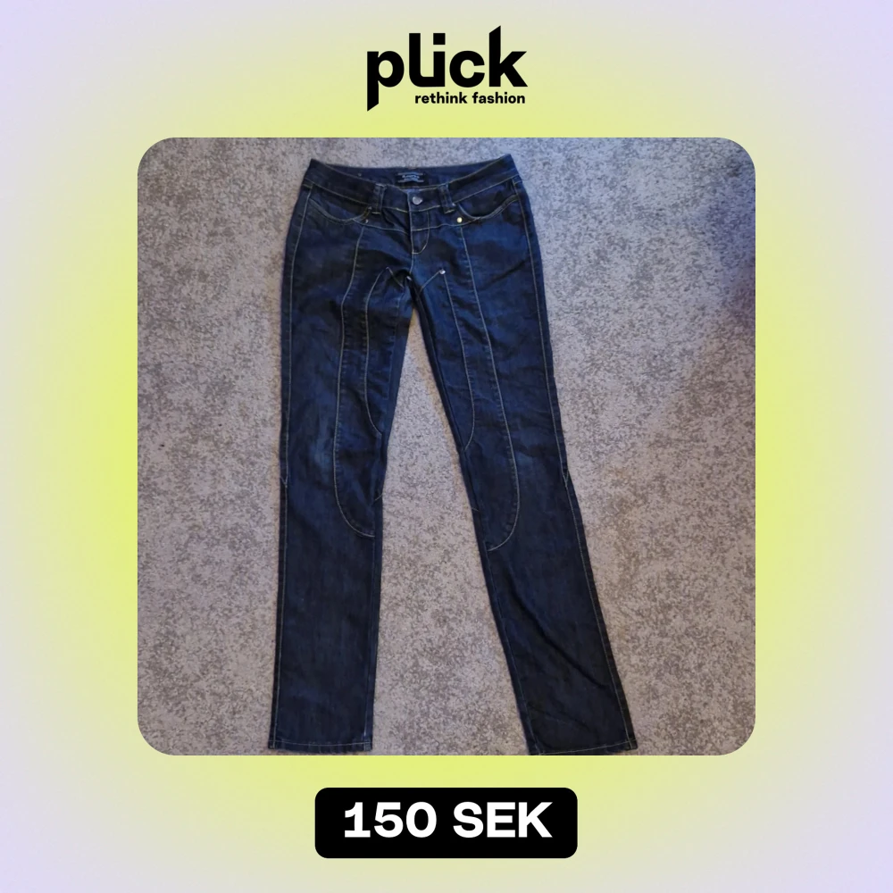 Säljer ett par snygga mörkblå jeans från R.marks. De har en klassisk femficksdesign med coola sömdetaljer och knappar fram. Perfekta för både vardag och fest! 🕺