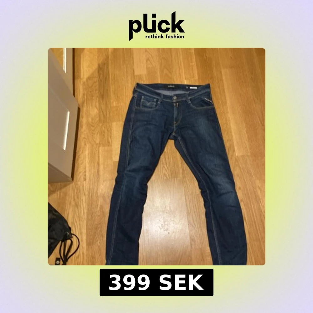 Snygga mörkblå jeans från Replay med klassisk femficksdesign och kontrastsömmar. De har en normal passform och är perfekta för en avslappnad stil. Märkeslogga på bakfickan och bälteshällor i midjan.