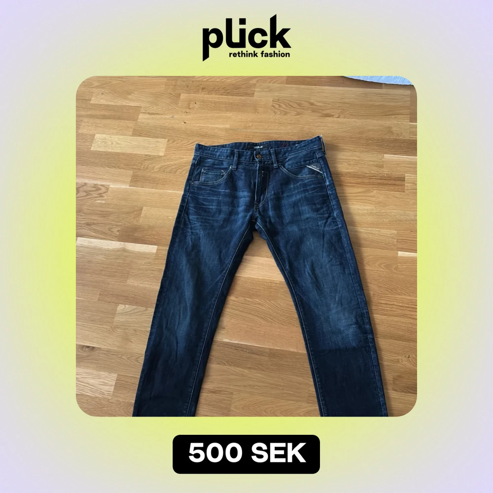 Säljer ett par mörkblå jeans från Replay (masig) i storlek 32. Sjukt snygg tvätt Skick 10/10, tapered fit.