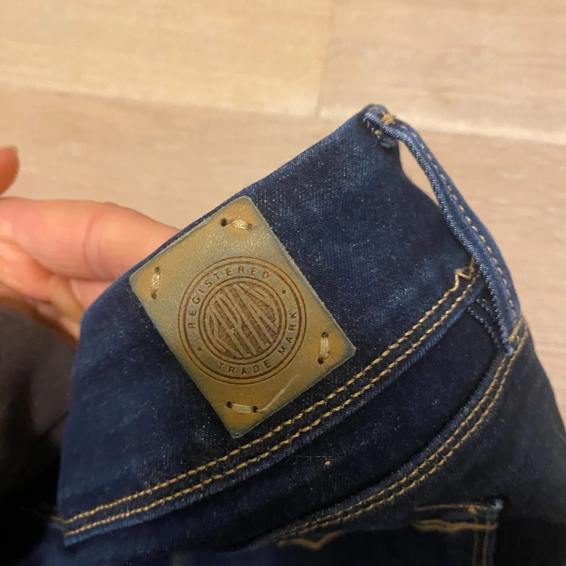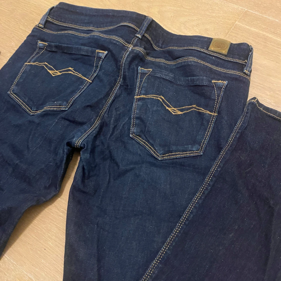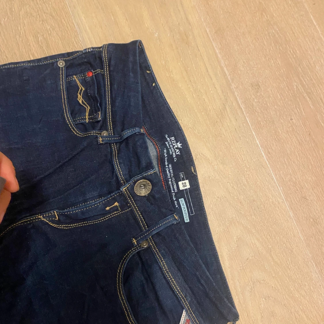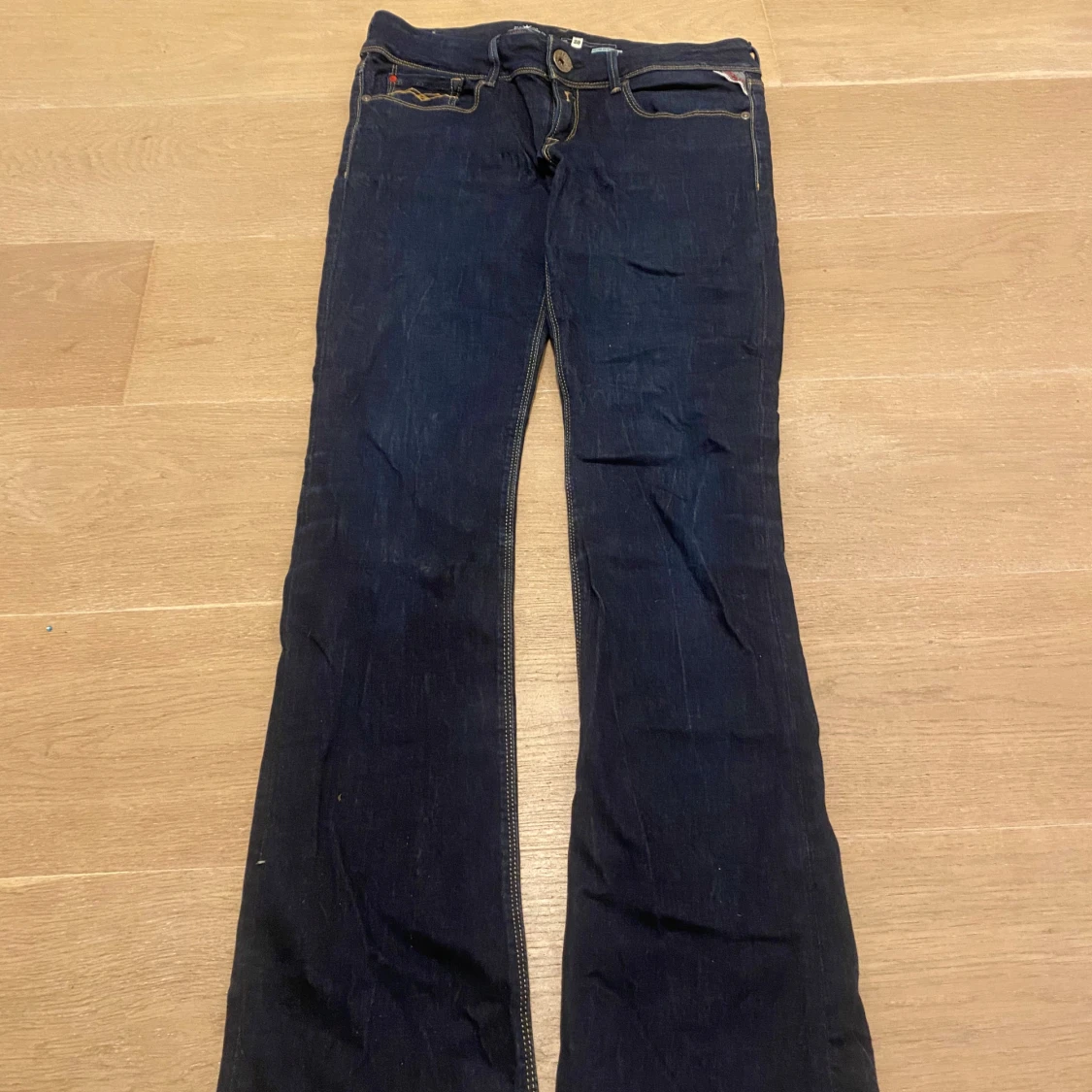 Snygga mörkblå jeans från replay. Byxorna är bootcut-stil, nästan inga spår på användning.. midja 38 längd 97