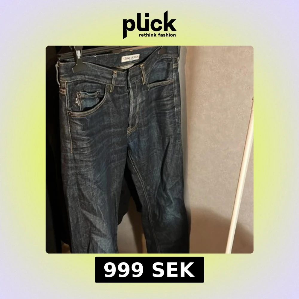 Snygga mörkblå jeans från Stone Island med klassisk femficksdesign och märkets ikoniska logga på bakfickan. Jeansen har en knappgylf och kontrastsömmar som ger en stilren look.