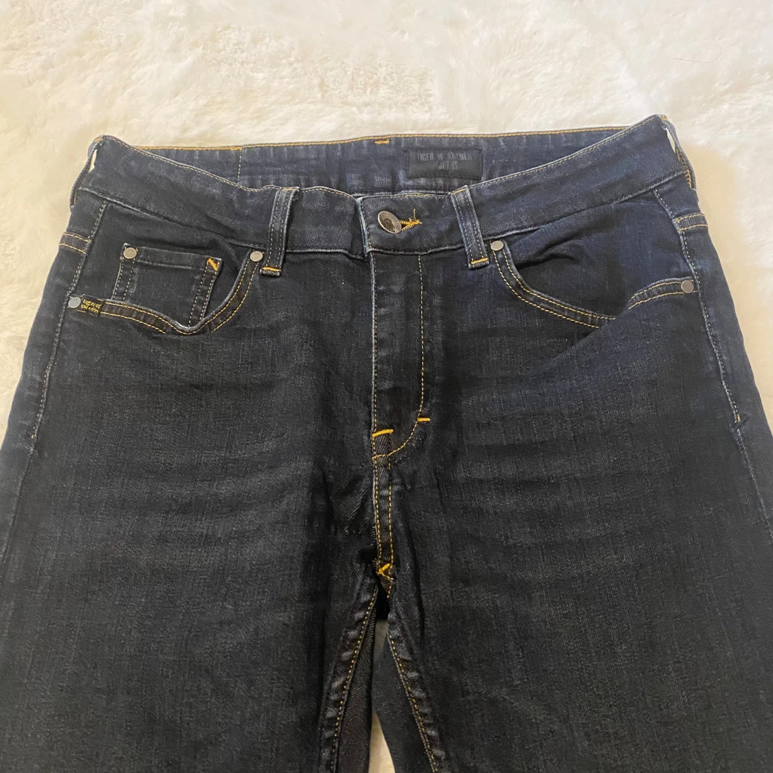 Snygga mörkblå jeans från Tiger of Sweden med klassisk femficksdesign och kontrasterande gula sömmar. Modellen heter Slight och byxorna är tillverkade i Italien. Perfekta för dig som gillar stilrena och tidlösa jeans.