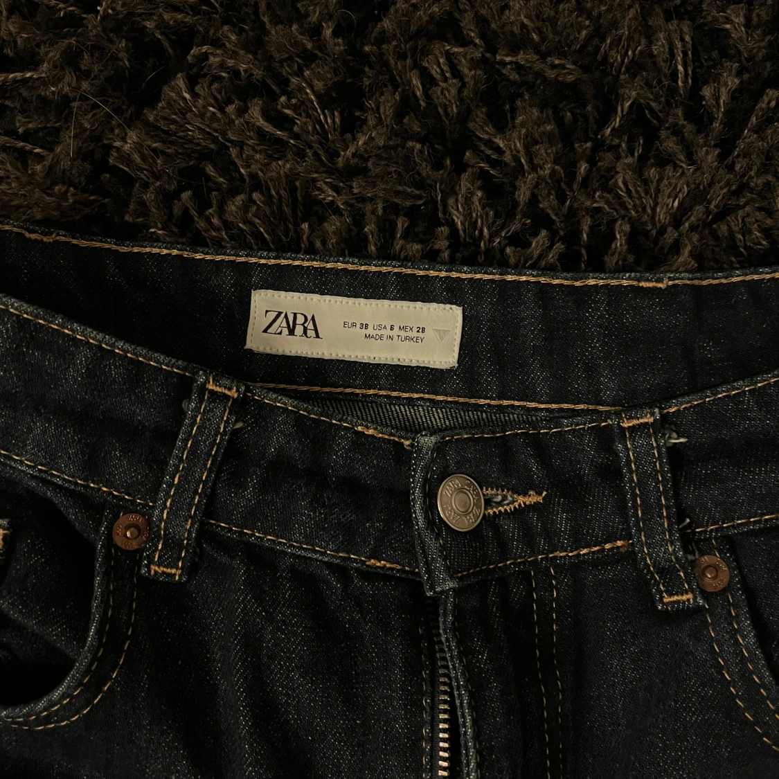 Snygga mörkblå jeans från Zara med medelhögmidja och vida ben. Så stilrena och var verkligen en favorit! Storlek 38 men passar en 36 också! 🥰lite slitna längst ner, skriv privat för bild. Modell: Jeans trf wide leg med medelhög midja (i färgen mörk indigo)