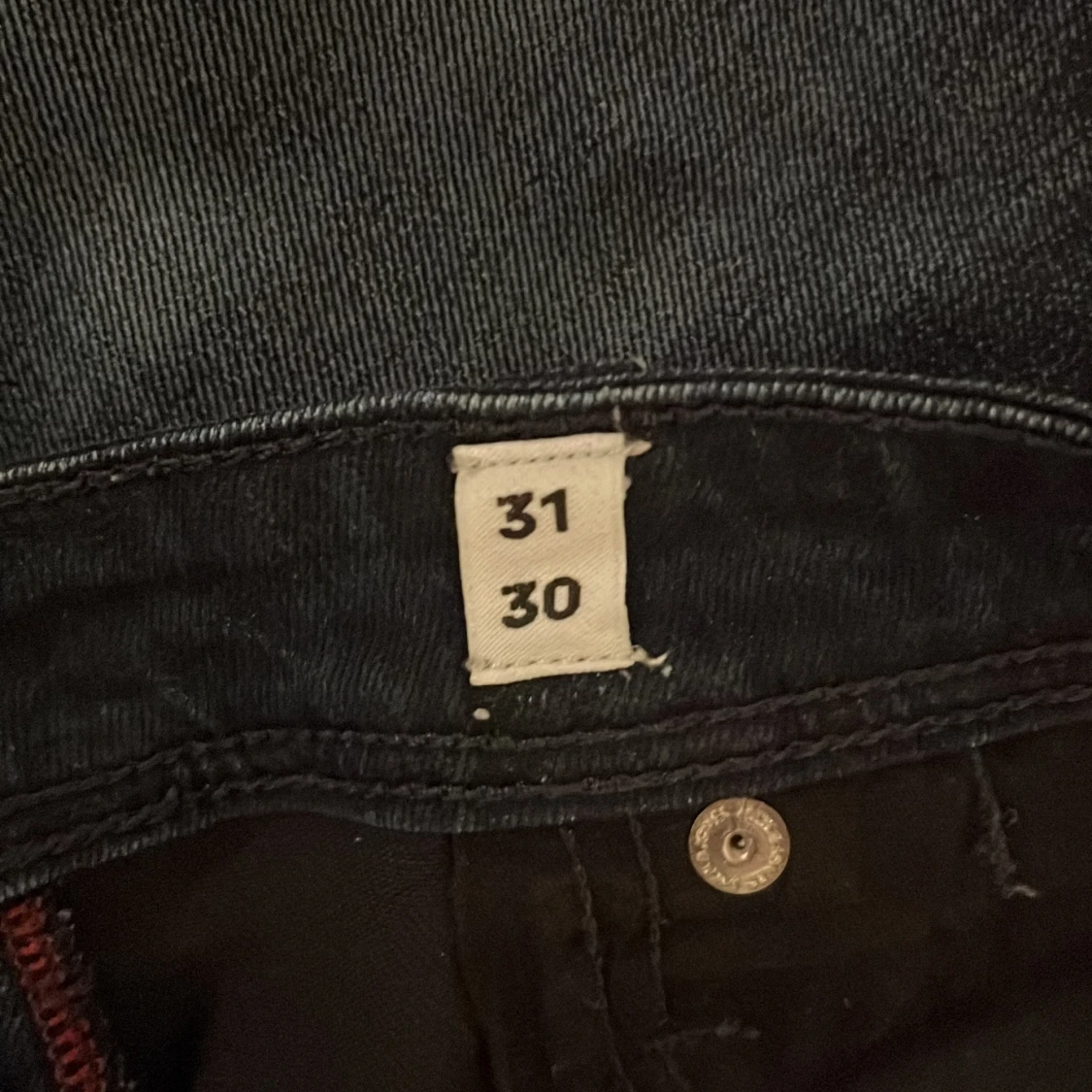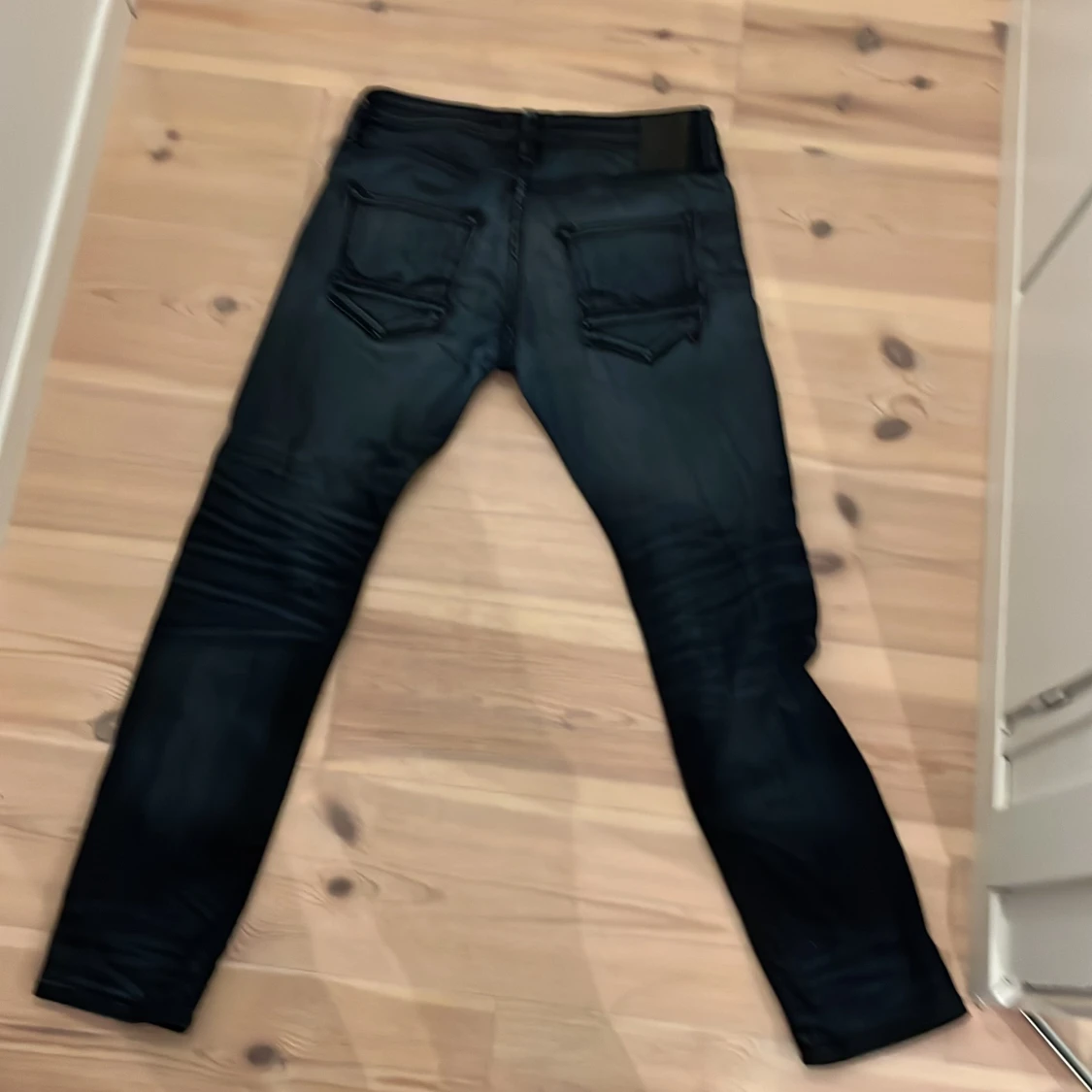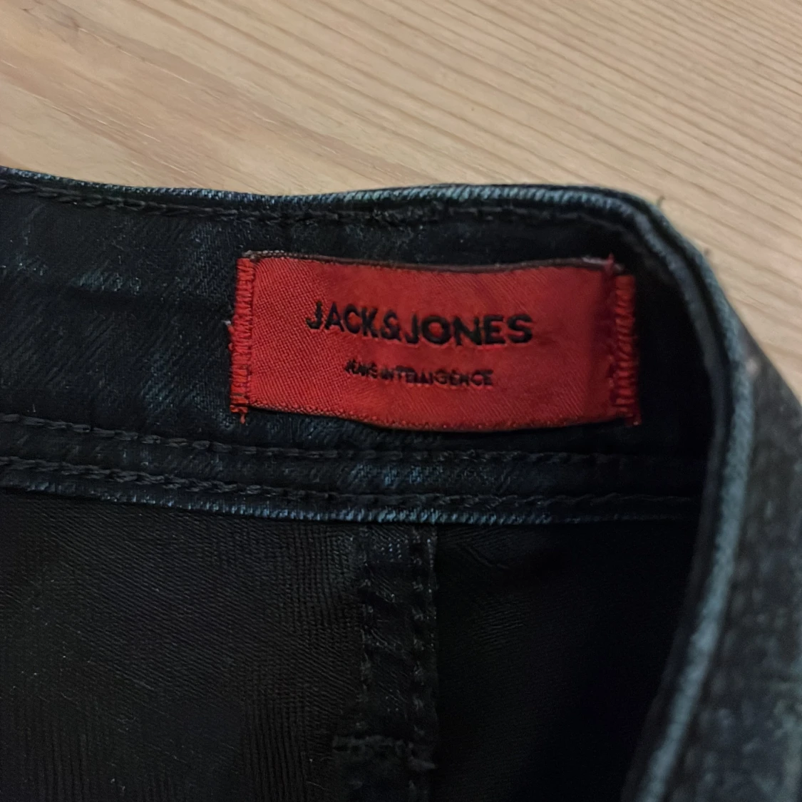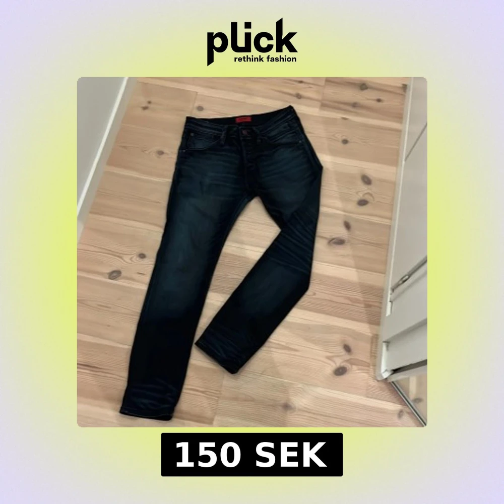 Snygga mörkblå jeans från Jack & Jones i storlek 31/30. Jeansen har klassisk femficksdesign, svarta sömmar och en diskret tvättad look. Perfekta för dig som gillar en tight passform och stilren vibe.