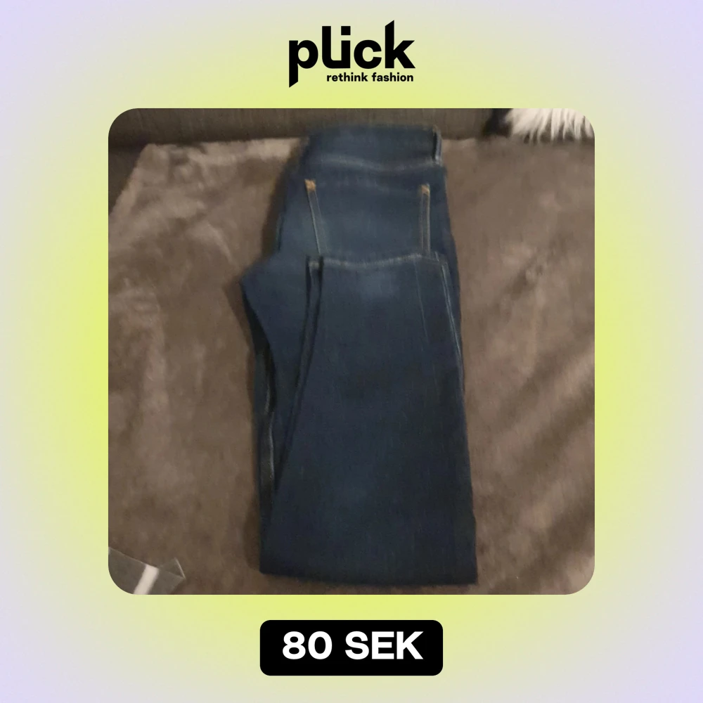 Säljer ett par snygga mörkblå jeans i bra skick. De har en klassisk femficksdesign och är perfekta för både vardag och fest. Jeansen har en normal passform och är tillverkade i ett slitstarkt denimtyg.