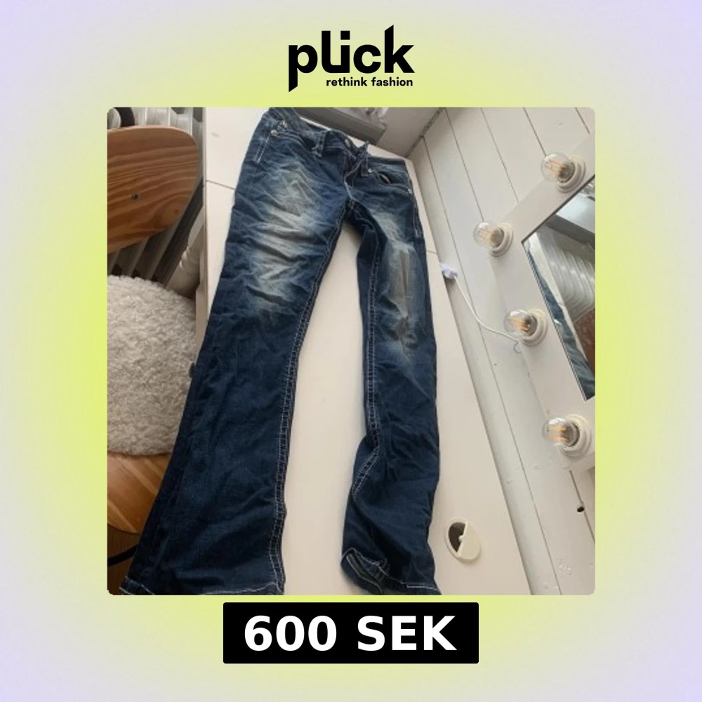 Mörkblå jeans som liknar miss mees i storlek 0/24, dom passar nån som är 160-165 i längden skulle jag säga. Jag säljer dom för dom är för små för mig ❤️jag köpte dom i usa i april, jag har bara använt dom typ 3 gånger när jag var i usa annars har jag inte använt dom! Nypris var 800