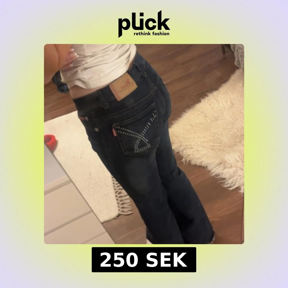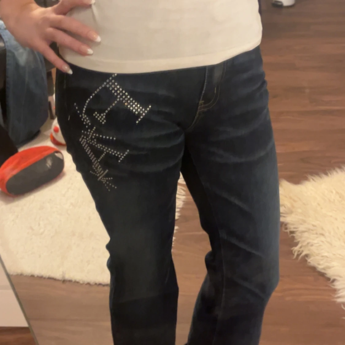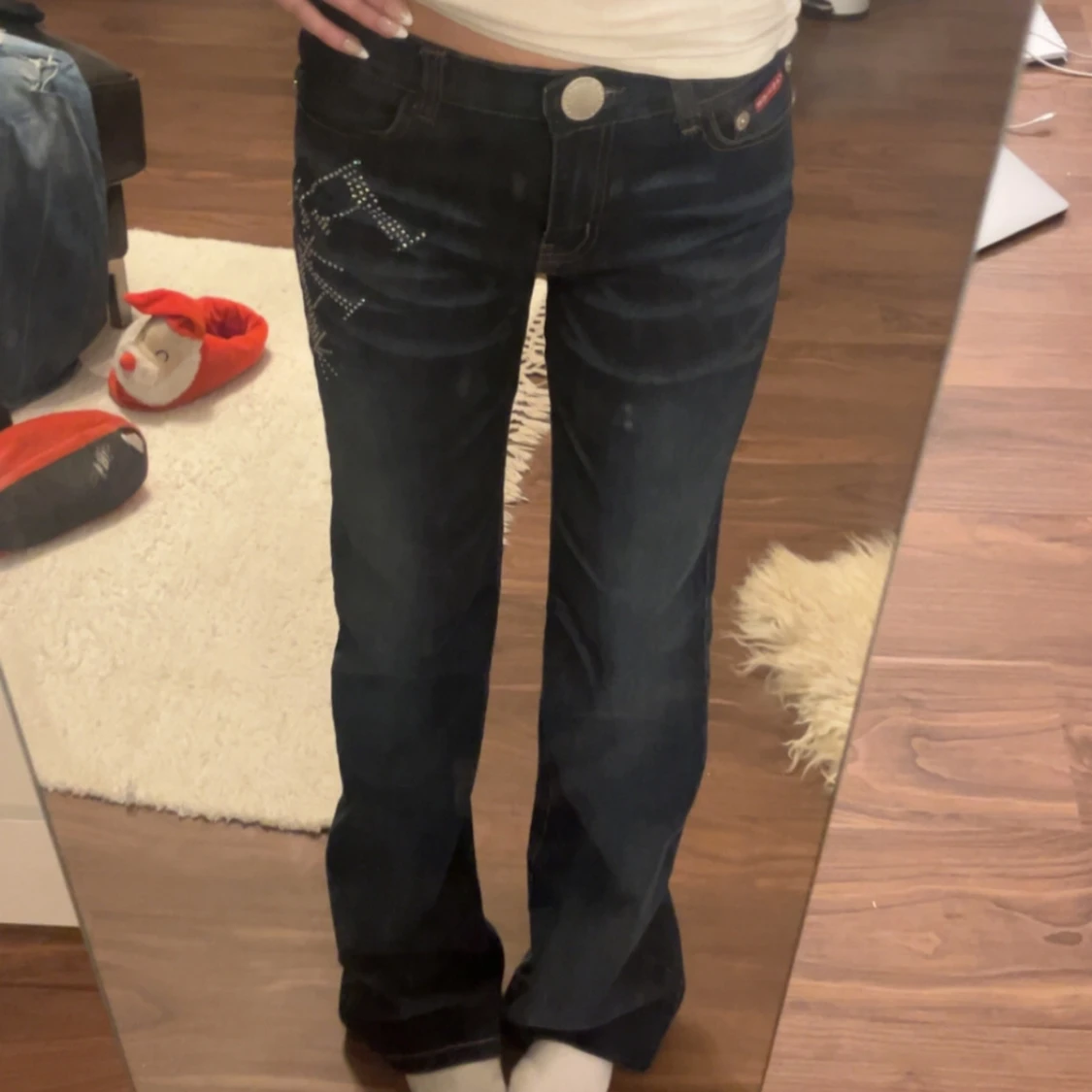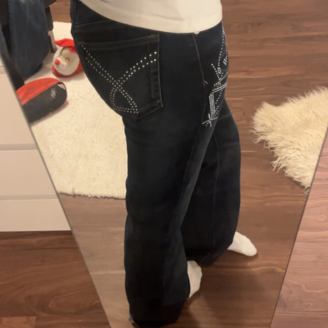 Mörk blåa jeans som knappt är använda med super fina glitter detaljer