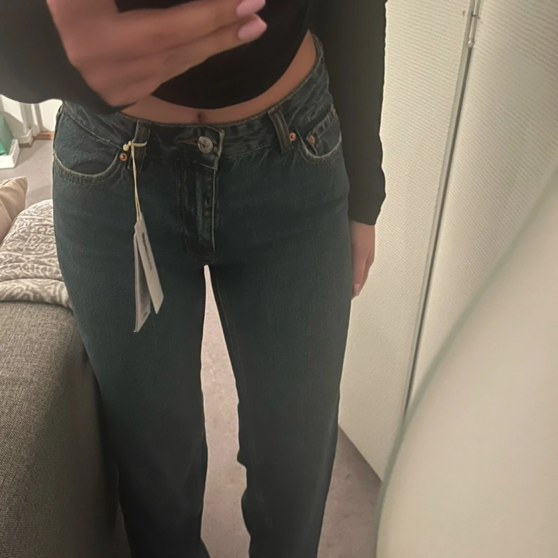 Mörkblå jeans med rak passform