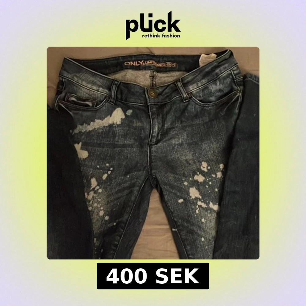 Snygga mörkblå jeans från Only med unikt stänkmönster. De har en klassisk femficksdesign och knappgylf. Perfekta för en cool och avslappnad stil.
