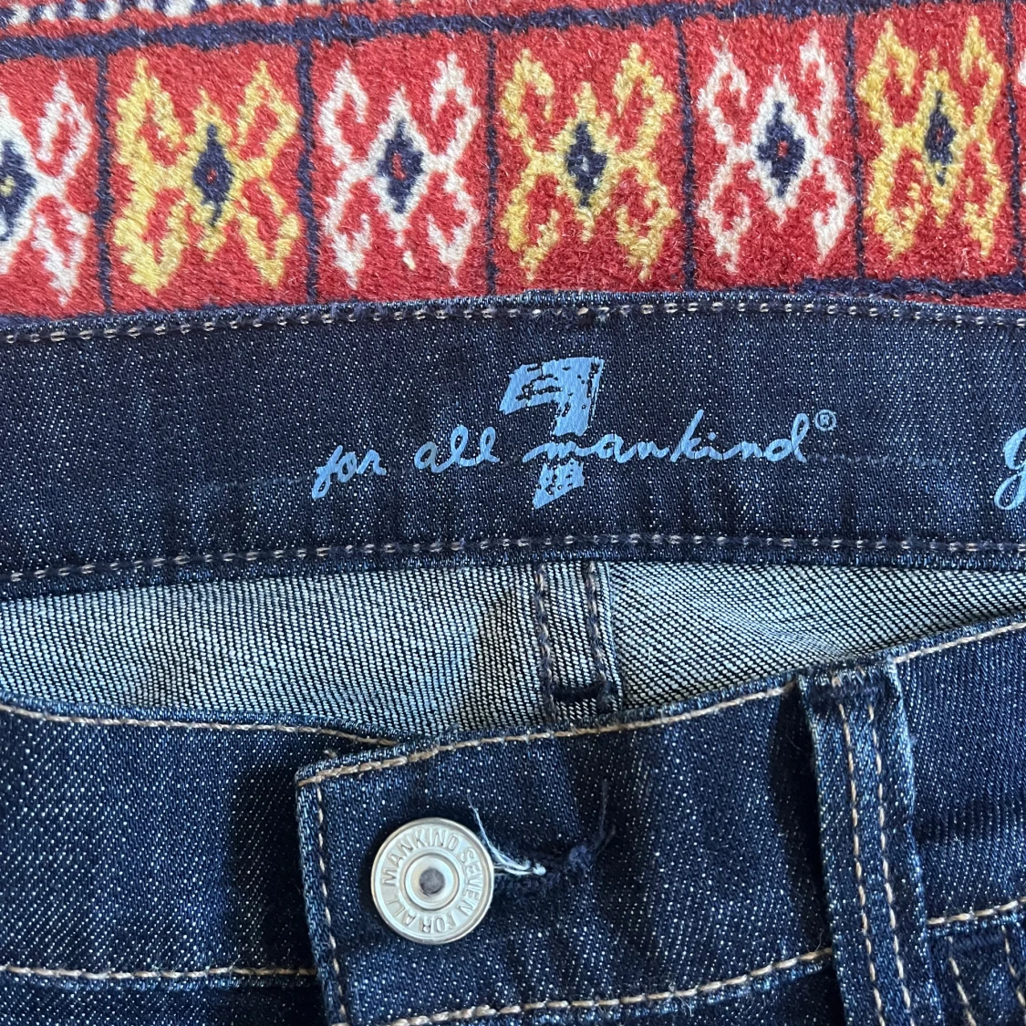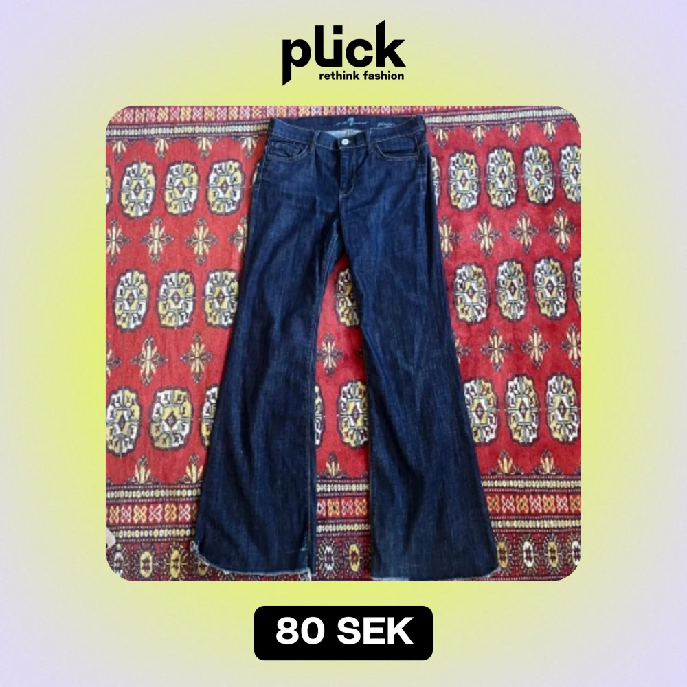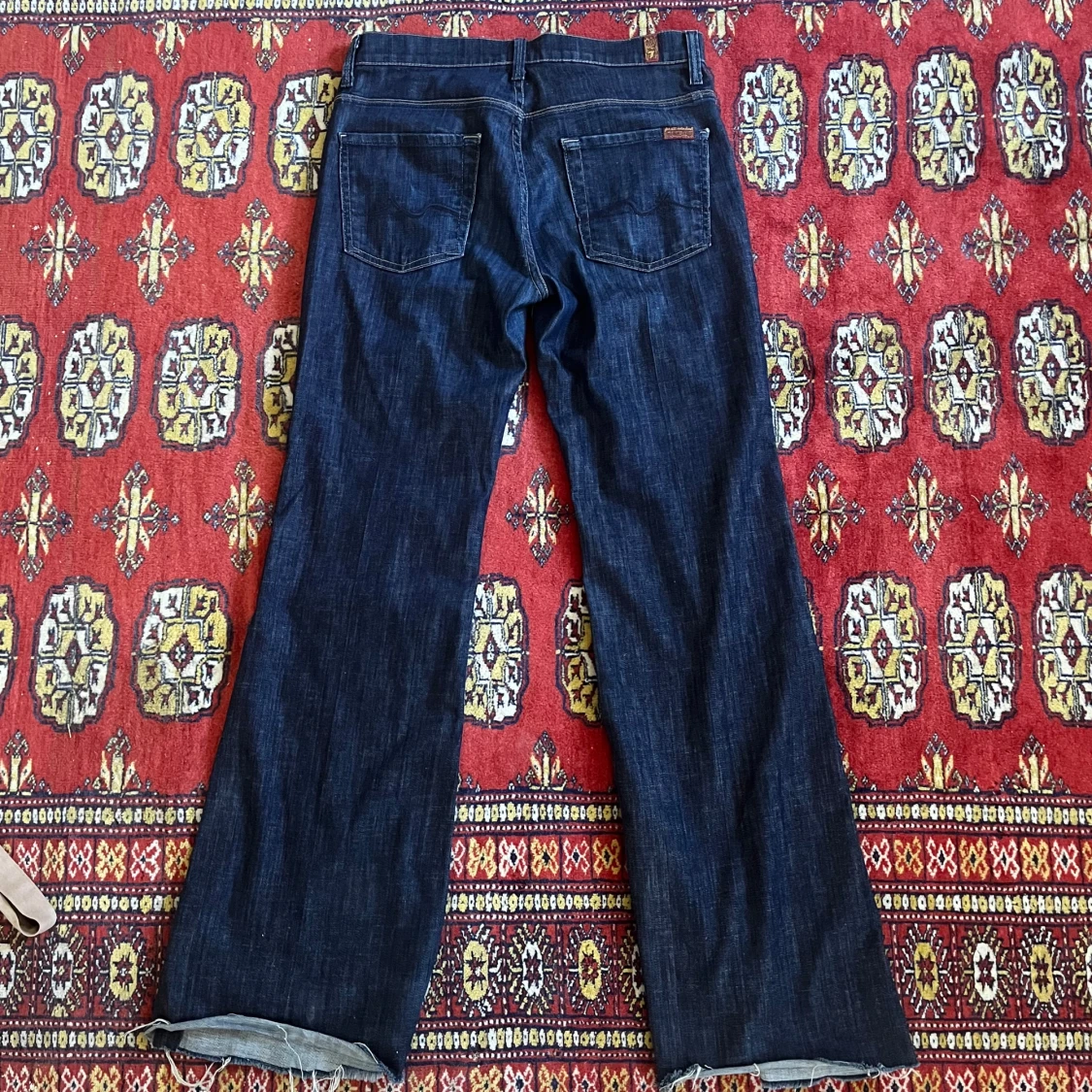Jättesnygga mörkblå utsvängda jeans från 7 For All Mankind. Står ingen storlek men skulle säga att storleken är en S