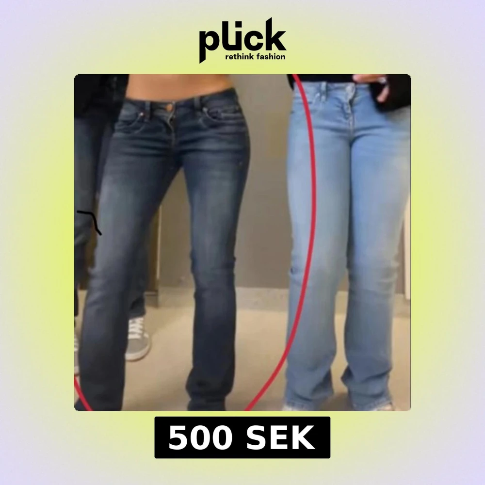 Säljer ett par bootcut jeans. De är mörkblåa med lätt slitning och låg midja. Strl 26x30. Perfekta för en avslappnad och trendig look.