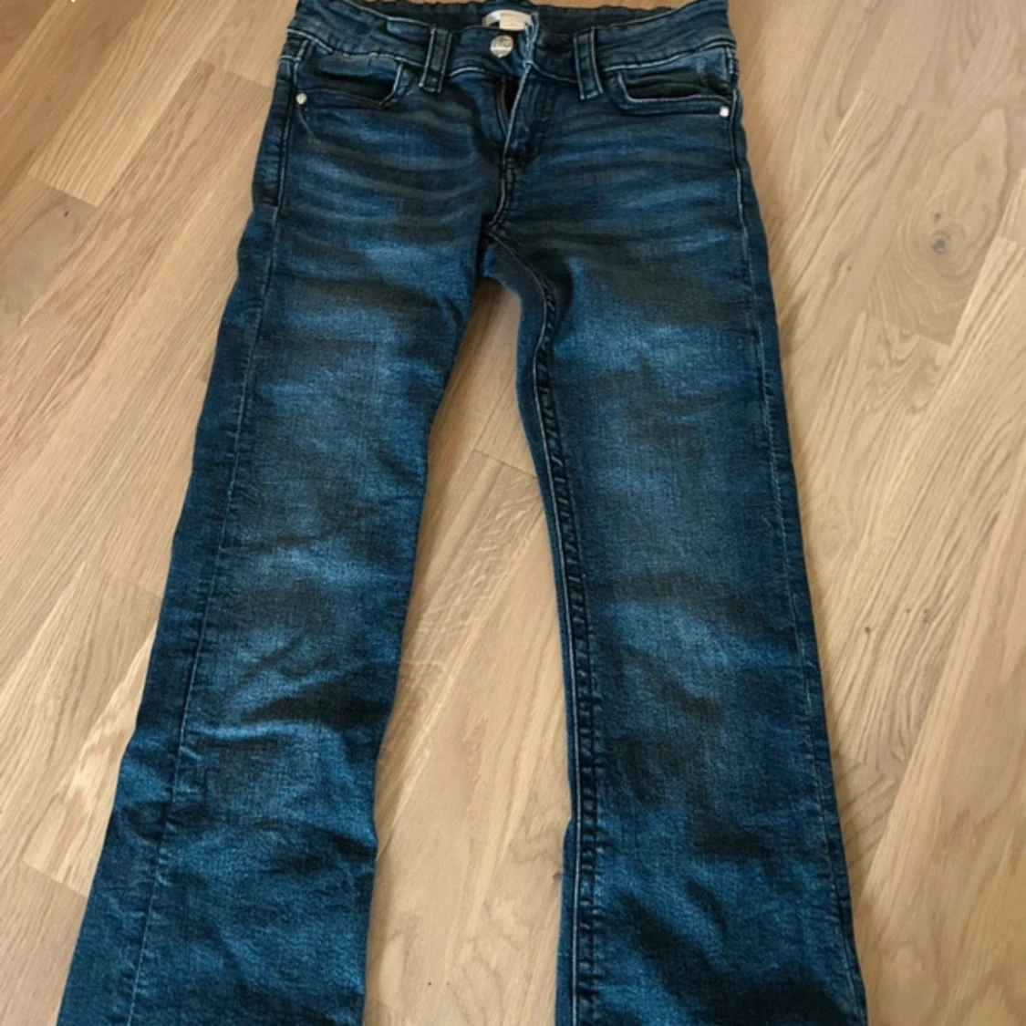 Snygga mörkblå jeans och klassisk femficksdesign. Jeansen har slitningar och kontrastsömmar, samt bakfickor med lock och knapp. Perfekta för en avslappnad och cool stil.