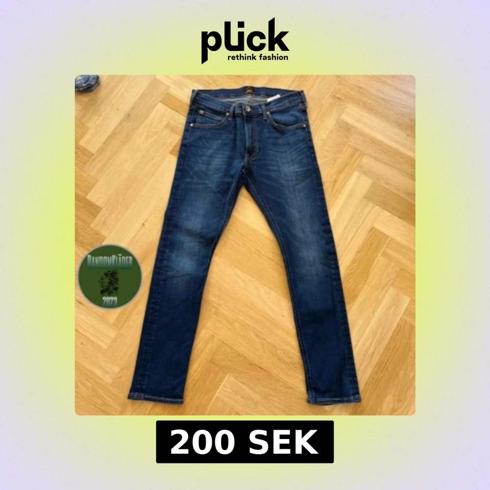 Snygga mörkblå jeansbyxor från Lee med en klassisk femficksdesign. Byxorna har en slim passform och är tillverkade i slitstarkt denim. Perfekta för en stilren look. ❄️☀️storlek 31/30