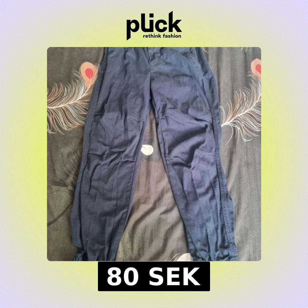 Mörkblå joggerbyxor från H&M med elastisk midja och muddar vid bensluten. Byxorna är pull-on-modell och har en avslappnad passform, perfekta för en chill vardagslook. Tillverkade i mjukt bomullsmaterial för extra komfort.