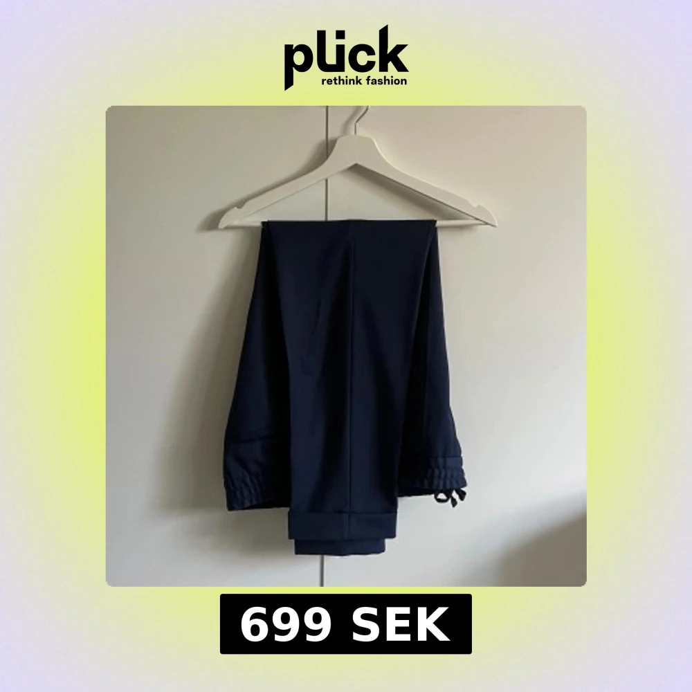 Säljer ett par mörkblå kostymbyxor från Filippa K. Byxorna har en klassisk rak passform med resår och dragsko i midjan för extra komfort. Perfekta för en stilren och avslappnad look.