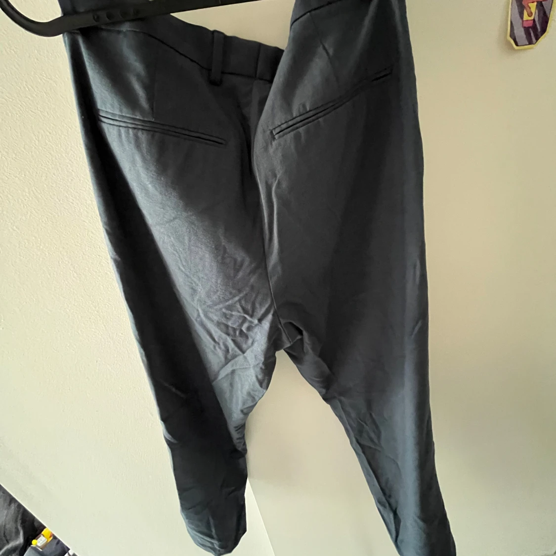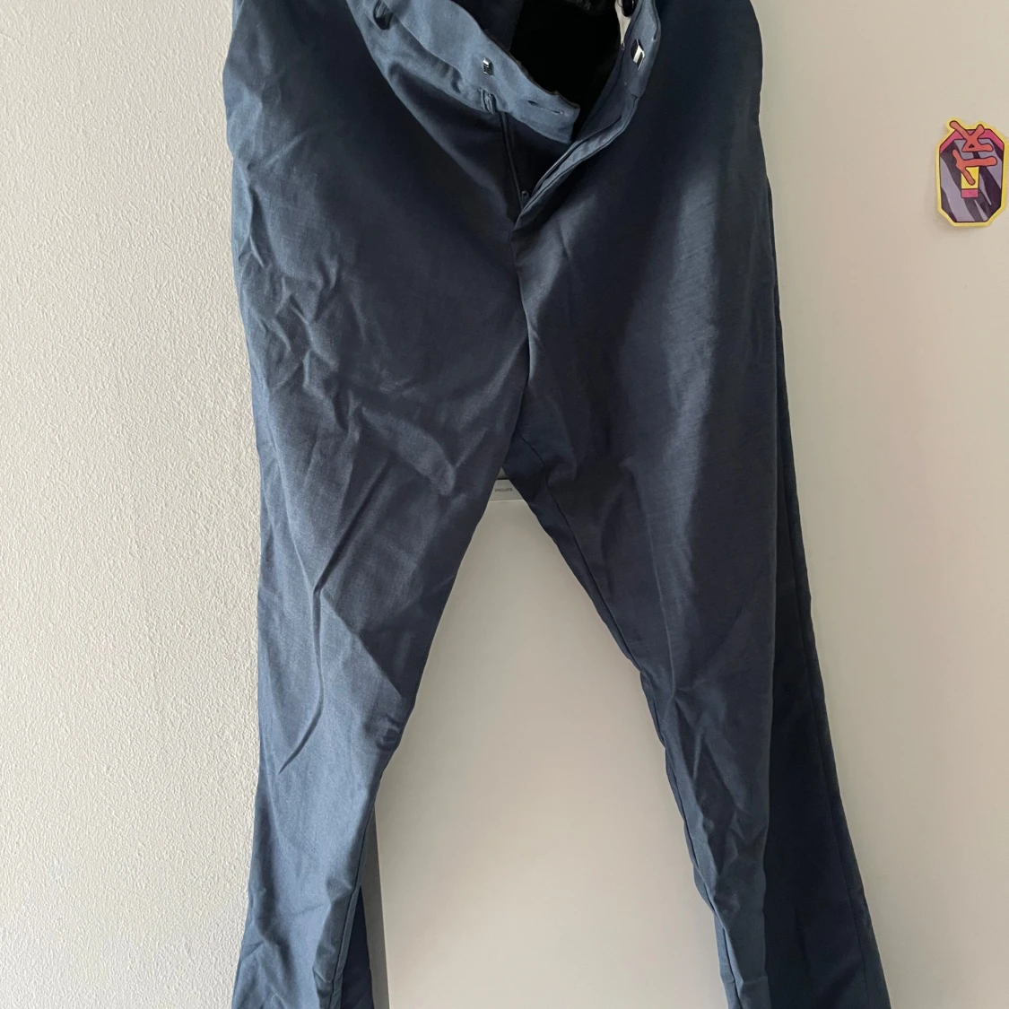 Snygga mörkblå kostymbyxor med klassisk passform och raka ben. Byxorna har hällor för bälte, diskreta bakfickor och stängs med knapp och dragkedja. Perfekta för en clean och stilren look.