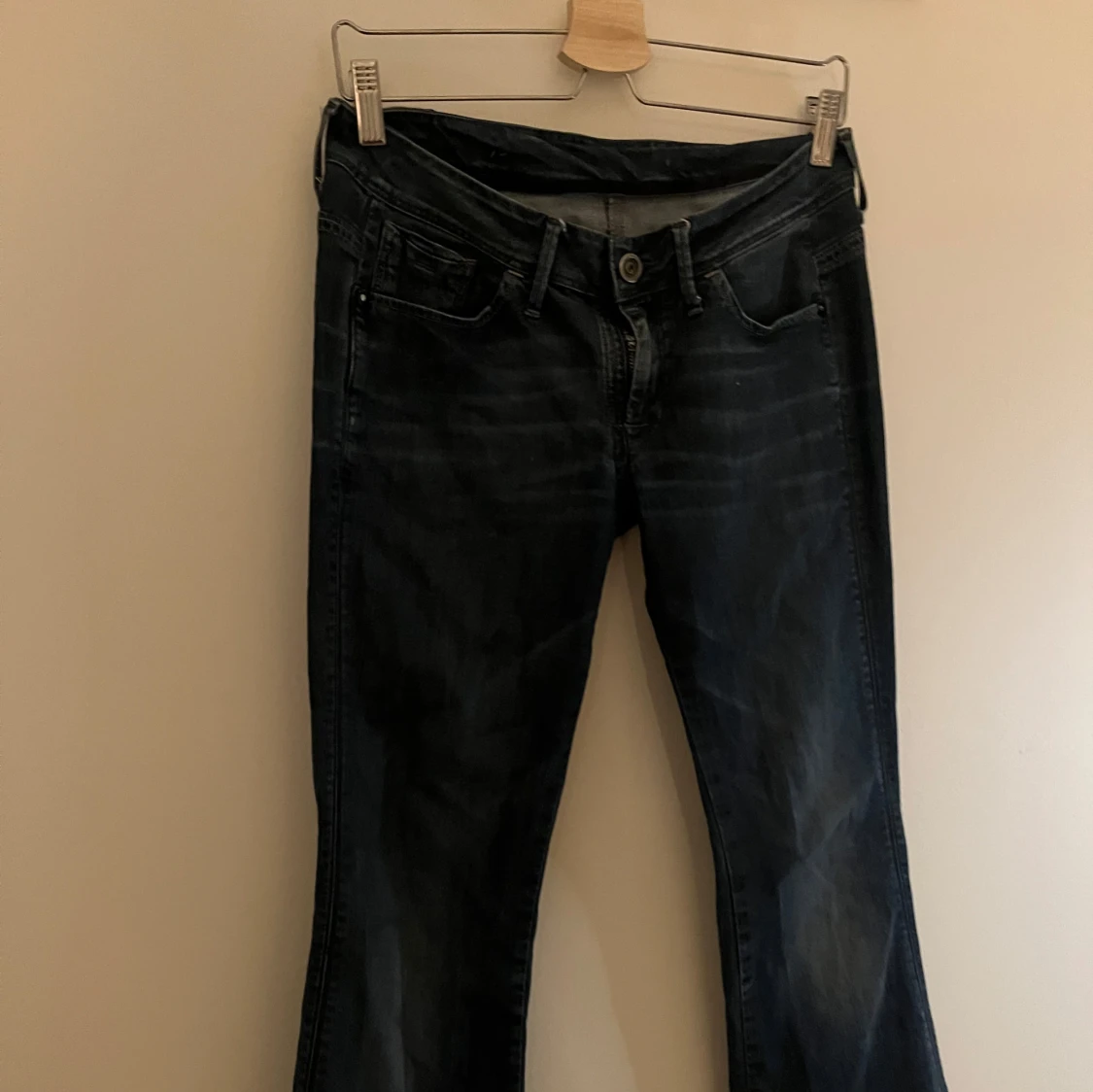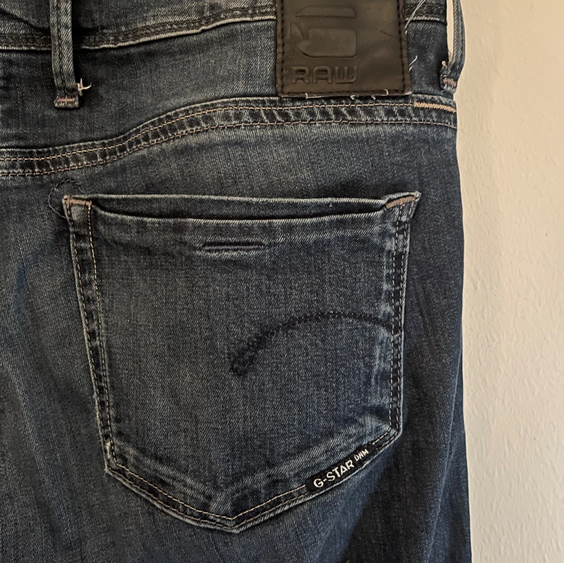 Snygga mörkblå jeans från G-Star RAW med bootcut-stil. De har en klassisk femficksdesign och en knappgylf. Perfekta för en avslappnad look. Lågmidjade. OBS de är klippte längst ner perfekta om man är 157-165