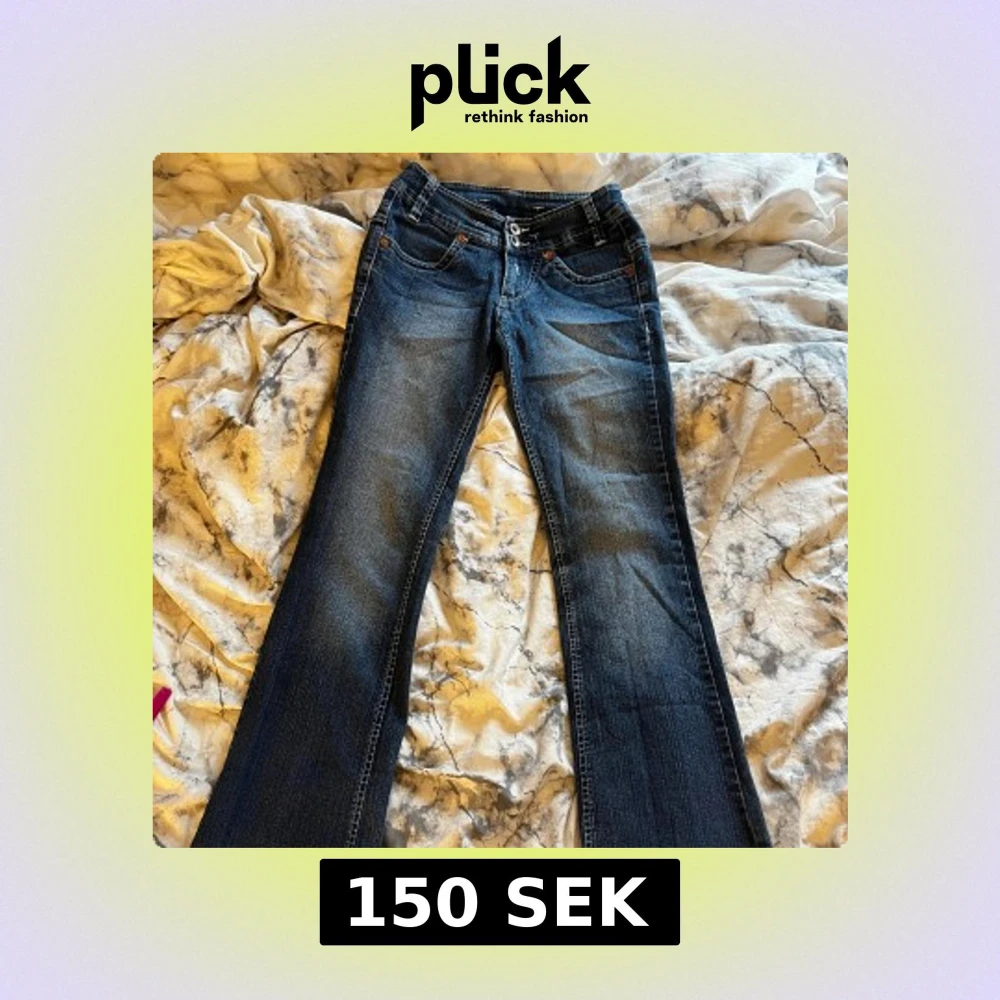 Snygga mörkblå jeans med väldigt låg midja och något utsvängda ben. De är skit snygga men tyvärr för små för mig:((