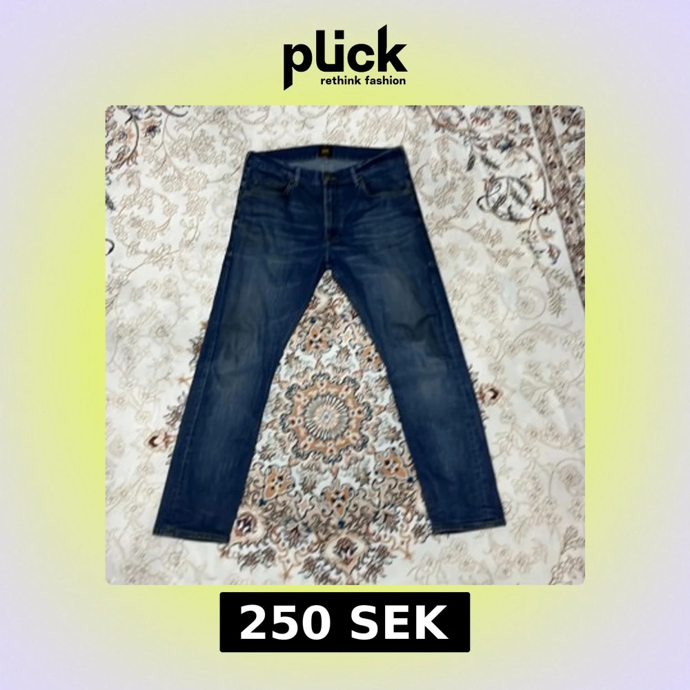 Säljer ett par klassiska mörkblå jeans från Lee med rak passform. Jeansen har fem fickor, gylf med dragkedja och subtila slitningar för en avslappnad look. Perfekta för dig som gillar en tidlös stil.