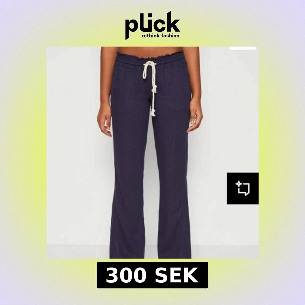 Säljer ett par mörkblå roxybyxor skriv för fler bilder, storlek M dem är jätte fina och inte slitna använda ungefär några gånger köpte för 600kr säljer då för 300 skriv och fråga om ni vill veta något mer!💗