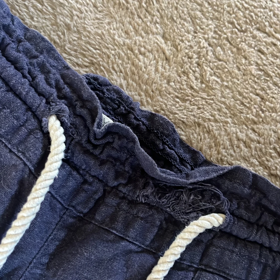 Mörkblåa Roxy linnebyxor som är perfekta inför sommaren! Lite problem med snörena dem är rätt känsliga på sista bilden ser ni men det är inget man tänker på när man har på dem! Köp gärn, pris kan diskuteras!🩷