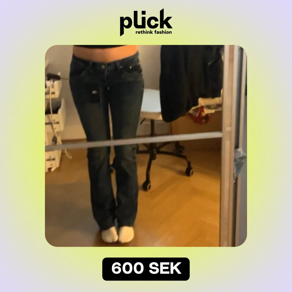 Säljer ett par snygga lågmidjade mörkblå jeans med bootcut. Köpt från Zalando i sommras men bara använda fåtal gånger! Köpta för 700kr!