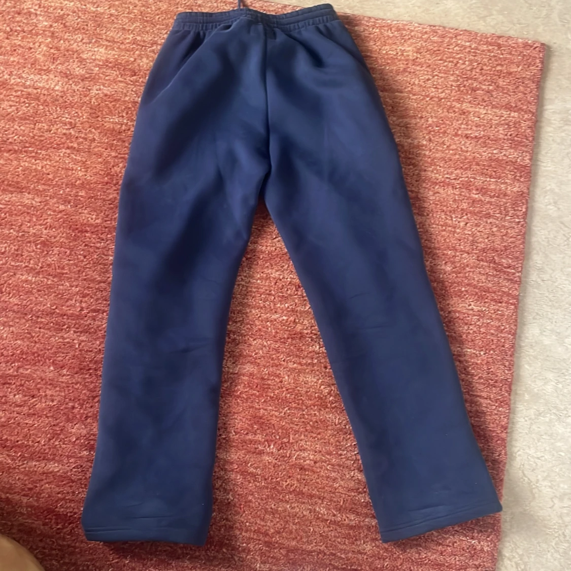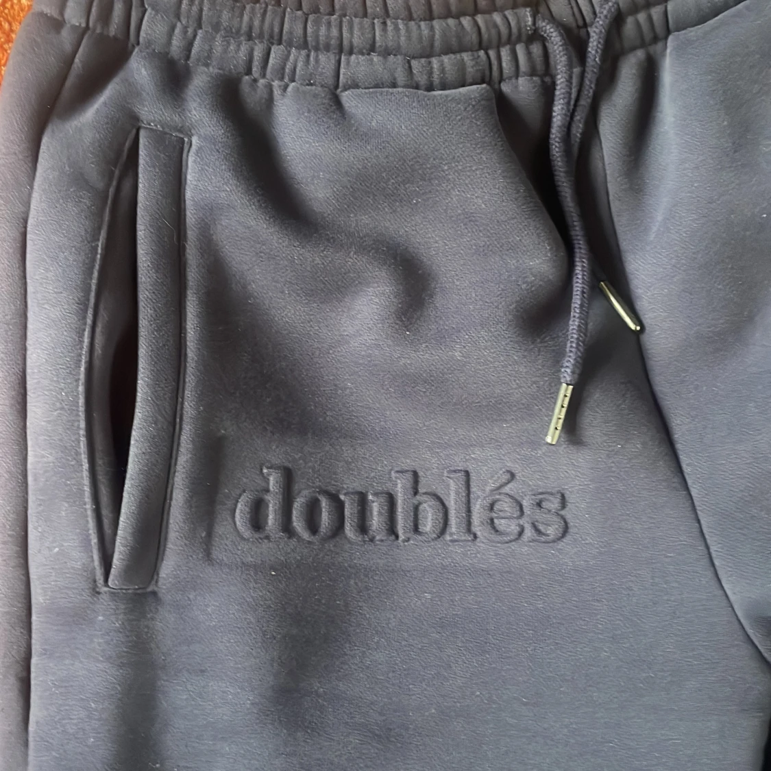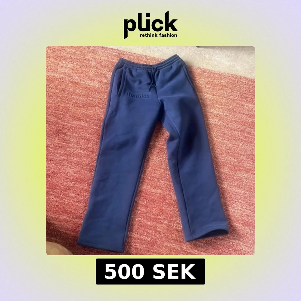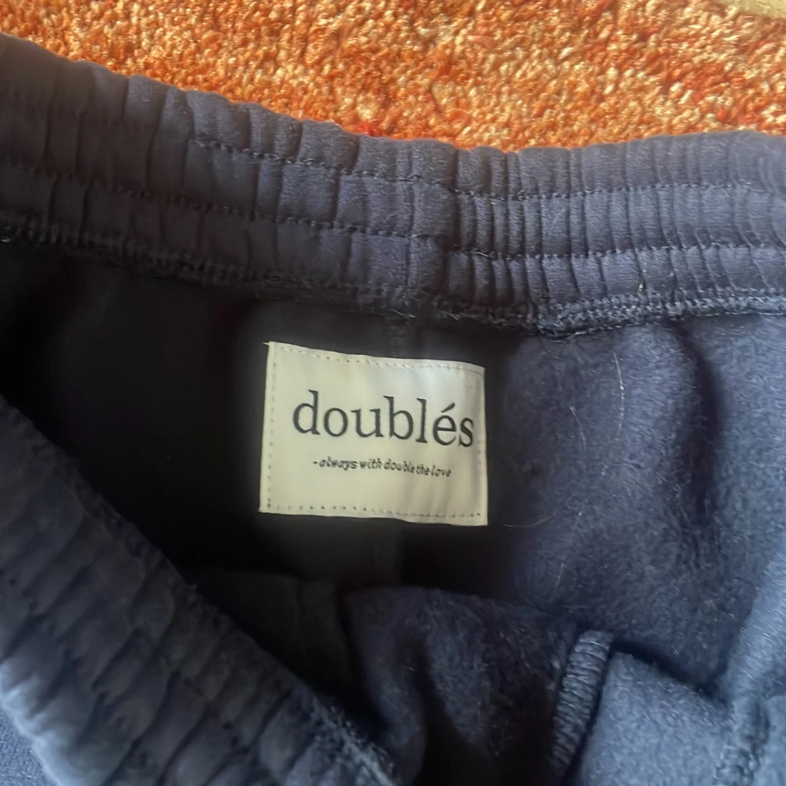 Snygga mörkblå mjukisbyxor från Doublés med elastisk midja och dragsko. Byxorna har en broderad logga på framsidan och praktiska sidofickor. Storlek Xs. Endast testad. Super mjuk och skön