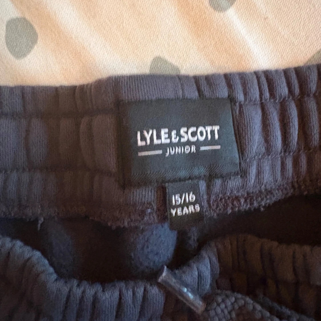 Säljer ett par mörkblå mjukisbyxor från Lyle & Scott Junior med resår i midjan och det klassiska gula logobroderiet på benet. Perfekta för en avslappnad stil och riktigt sköna att ha på sig. Storlek (15-16 år) Väldigt bra skick