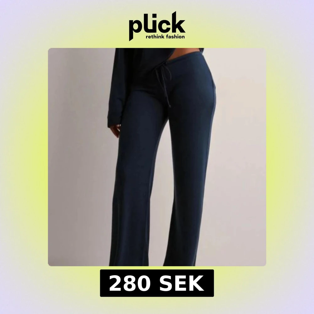 Mörkblå mjukisbyxor från Nelly med normal passform och raka ben. Knappt använda. Kom med prisförslag.