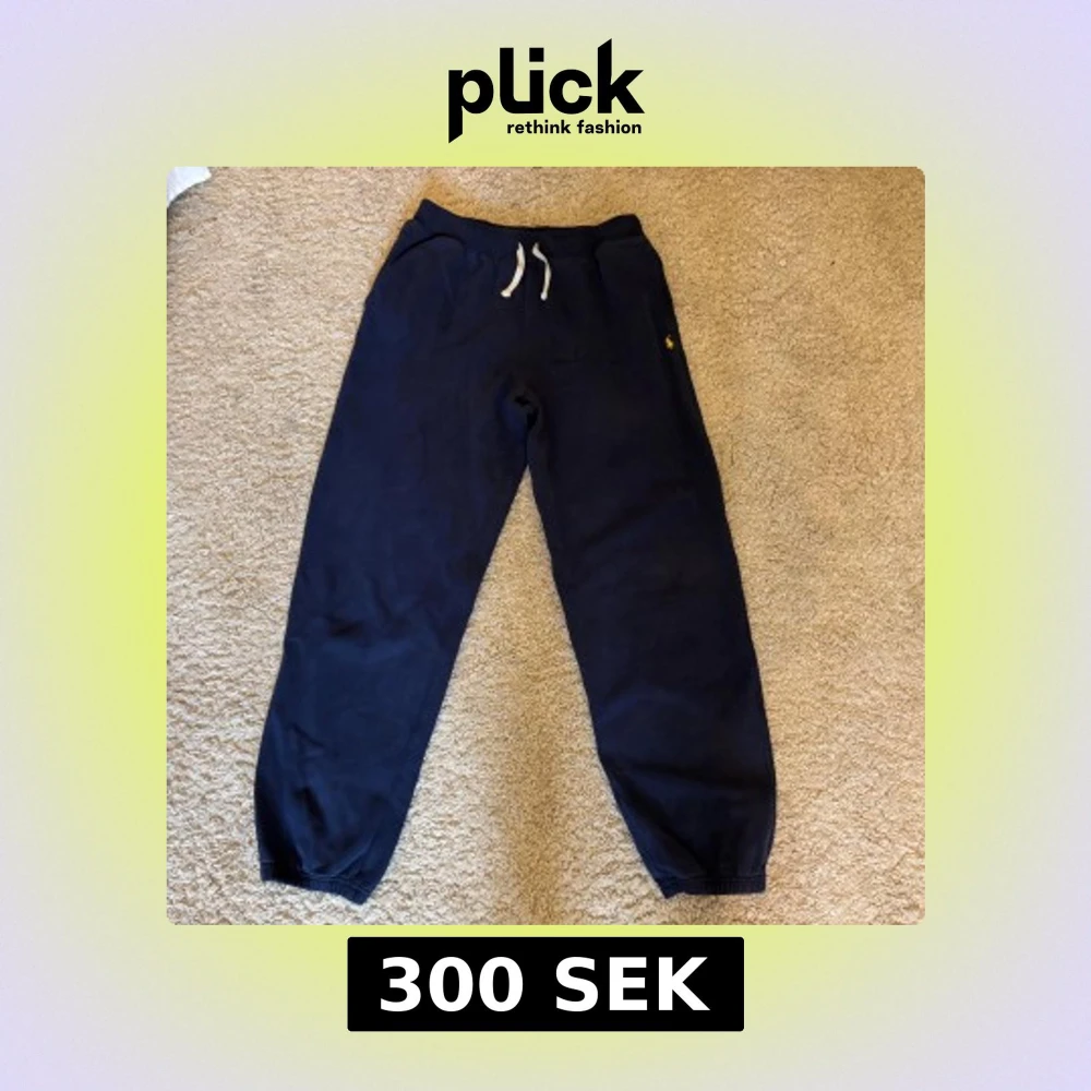 Mörkblå mjukisbyxor från Polo Ralph Lauren i storlek XL. Byxorna har vit snörning i midjan, resår vid bensluten och den klassiska gula Polo-loggan broderad på ena benet. Tillverkade i mjuk bomull för maximal komfort.