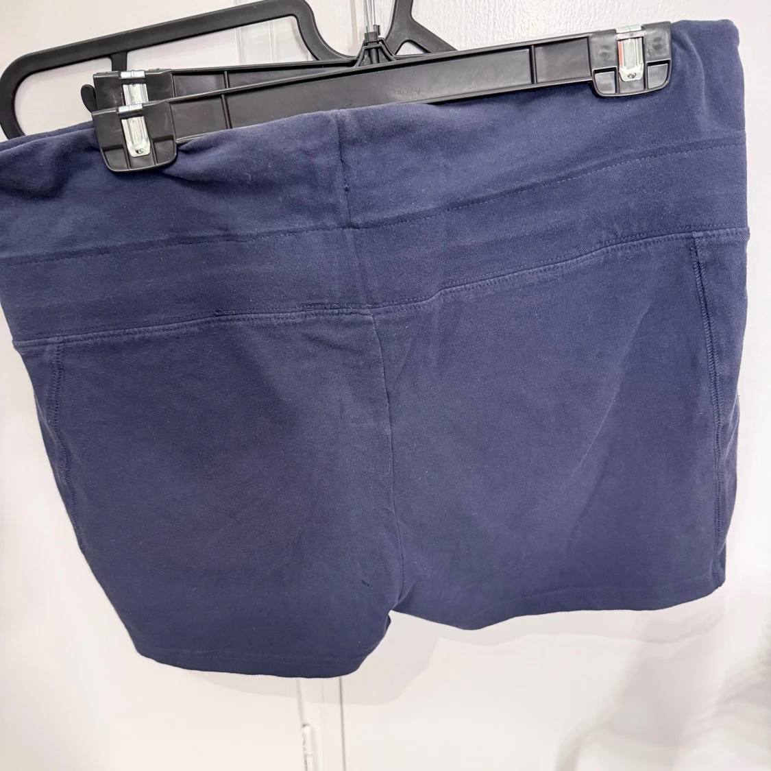 Mörkblå mjukisshorts från Esmara i storlek L. De har bred resår i midjan och vita snören för justering. Tillverkade i mjukt bomullsmaterial, perfekta för chill eller träning. Klassisk och enkel design utan fickor.