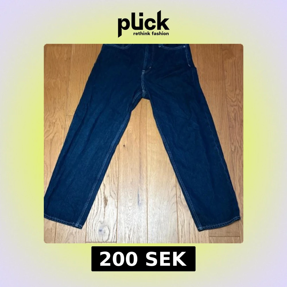 Snygga mörkblå jeans med klassisk rak passform och kontrastsömmar. Modellen har fem fickor och normal midja, vilket ger en tidlös look. Perfekta för dig som gillar enkel och clean stil. Materialet är slitstark denim. Okänt märke säljer pågrund av att dem inte passa mig, rensar ur min garderob!