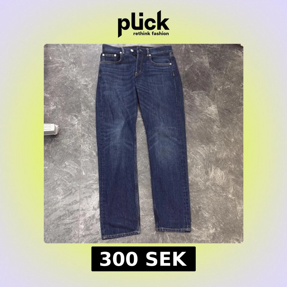 Snygga mörkblå jeans från ARKET i rak modell. Tillverkade av 80% ekologisk bomull och 20% återvunnen bomull. Klassisk femficksdesign, normal passform och stilrena kontrastsömmar. Perfekta för en clean och tidlös look.