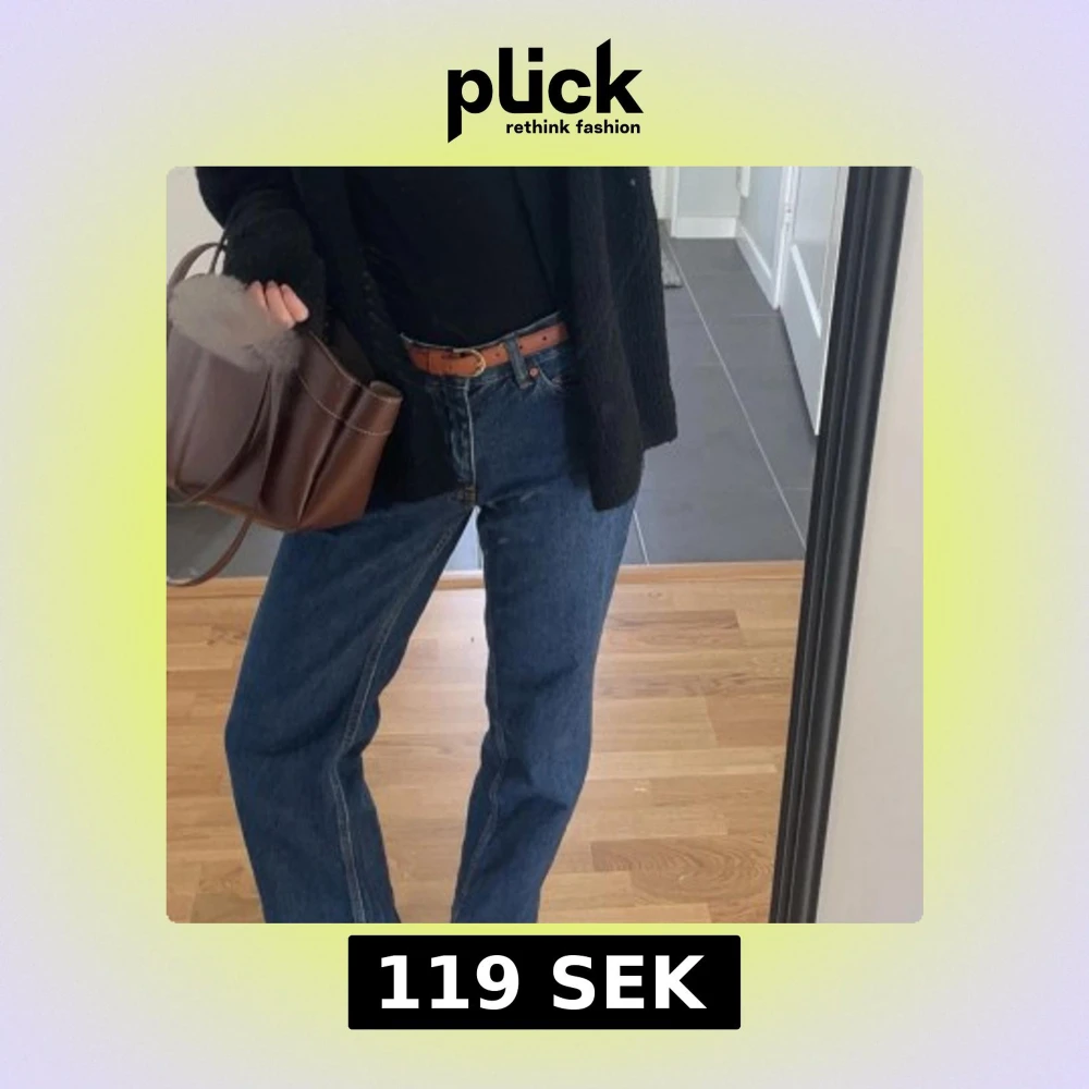 Säljer ett par mörkblå jeans som är midwaist och har raka ben. Jeansen är från Ginatrocot använda fåtal gånger så nästan som nya!