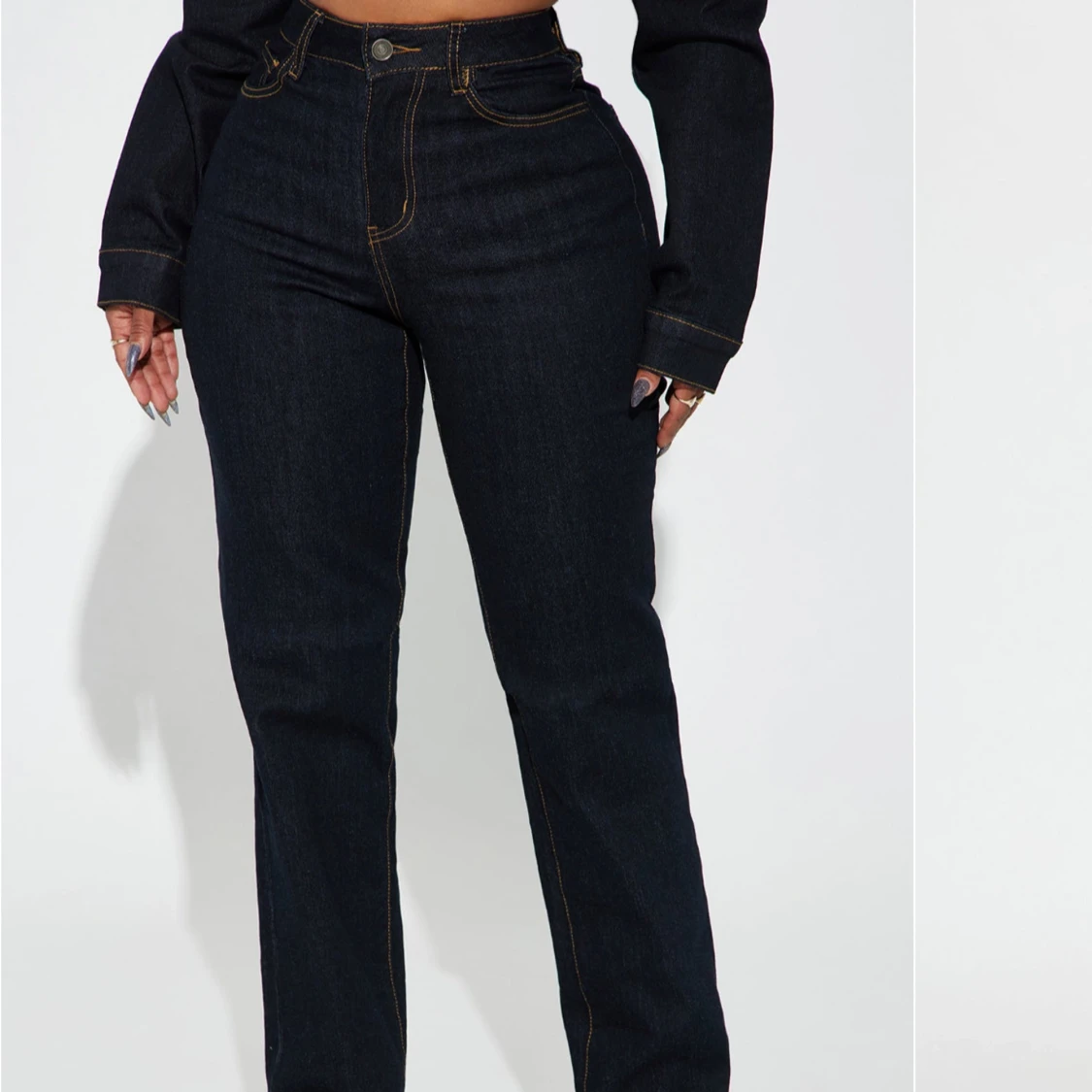 Snygga mörkblå jeans med raka ben och hög midja. Jeansen har klassiska fickor fram och bak, kontrastsömmar och är tillverkade i stretchigt denim för extra komfort. Dessa är HELT nya, jag beställde dem i fel storlek så därför jag säljer, kunde ej skicka tillbaka på grund av skatte situationen i usa.