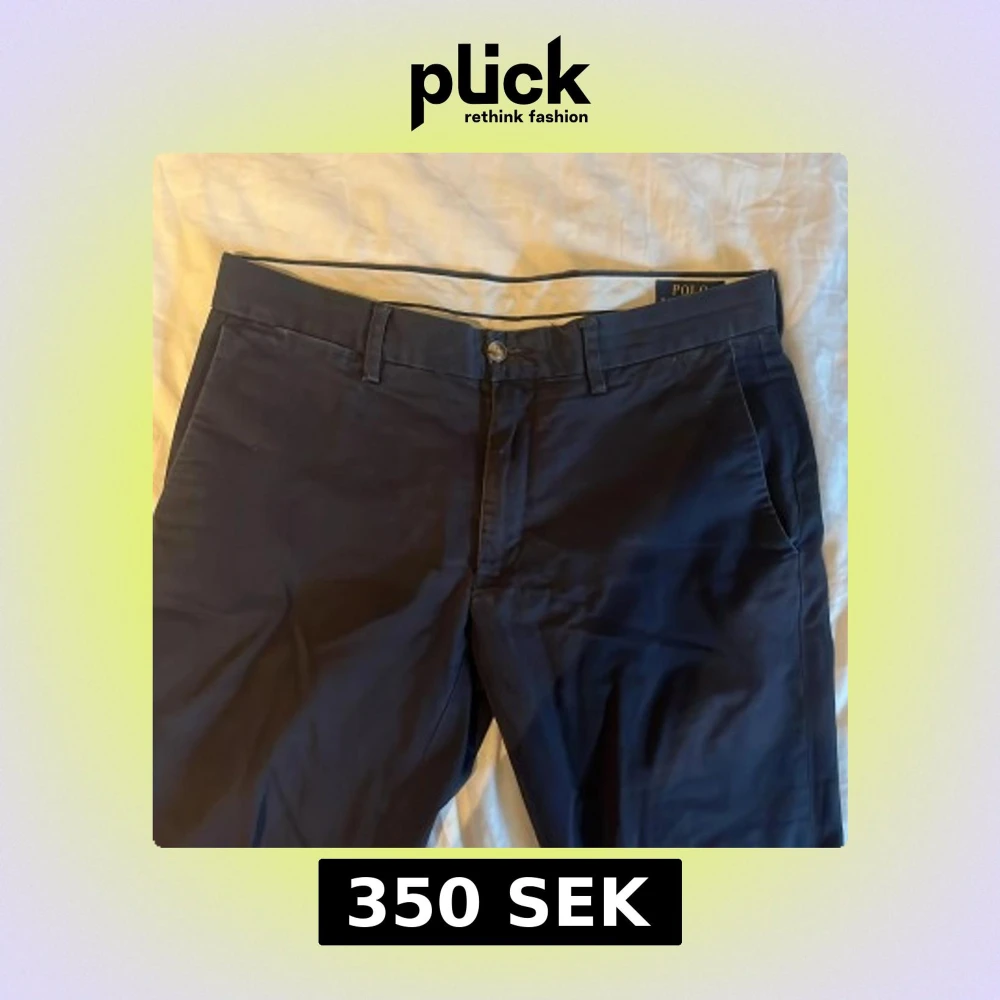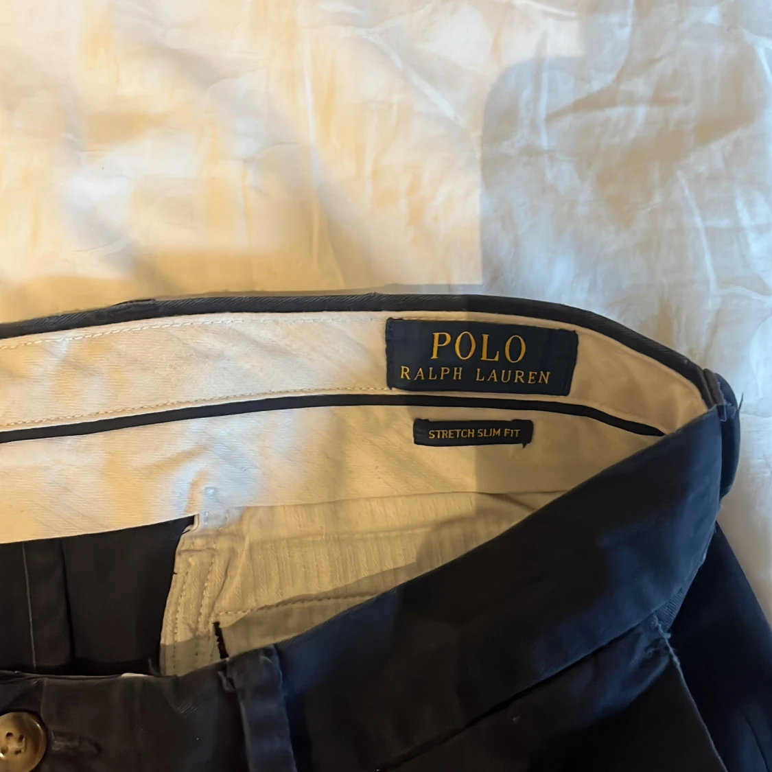 Snygga mörkblå chinos från Polo Ralph Lauren i stretchigt bomullsmaterial. Byxorna har slim fit passform. W30/L34