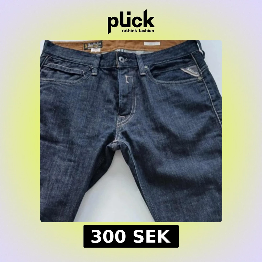 Snygga mörkblå jeans från Replay med klassisk femficksdesign och kontrastsömmar. Jeansen har raka ben och normal passform, samt Replay-logga på bakfickan och läderpatch i midjan. Perfekta för dig som gillar stilrena och tidlösa jeans.
