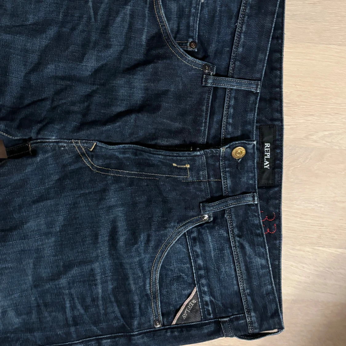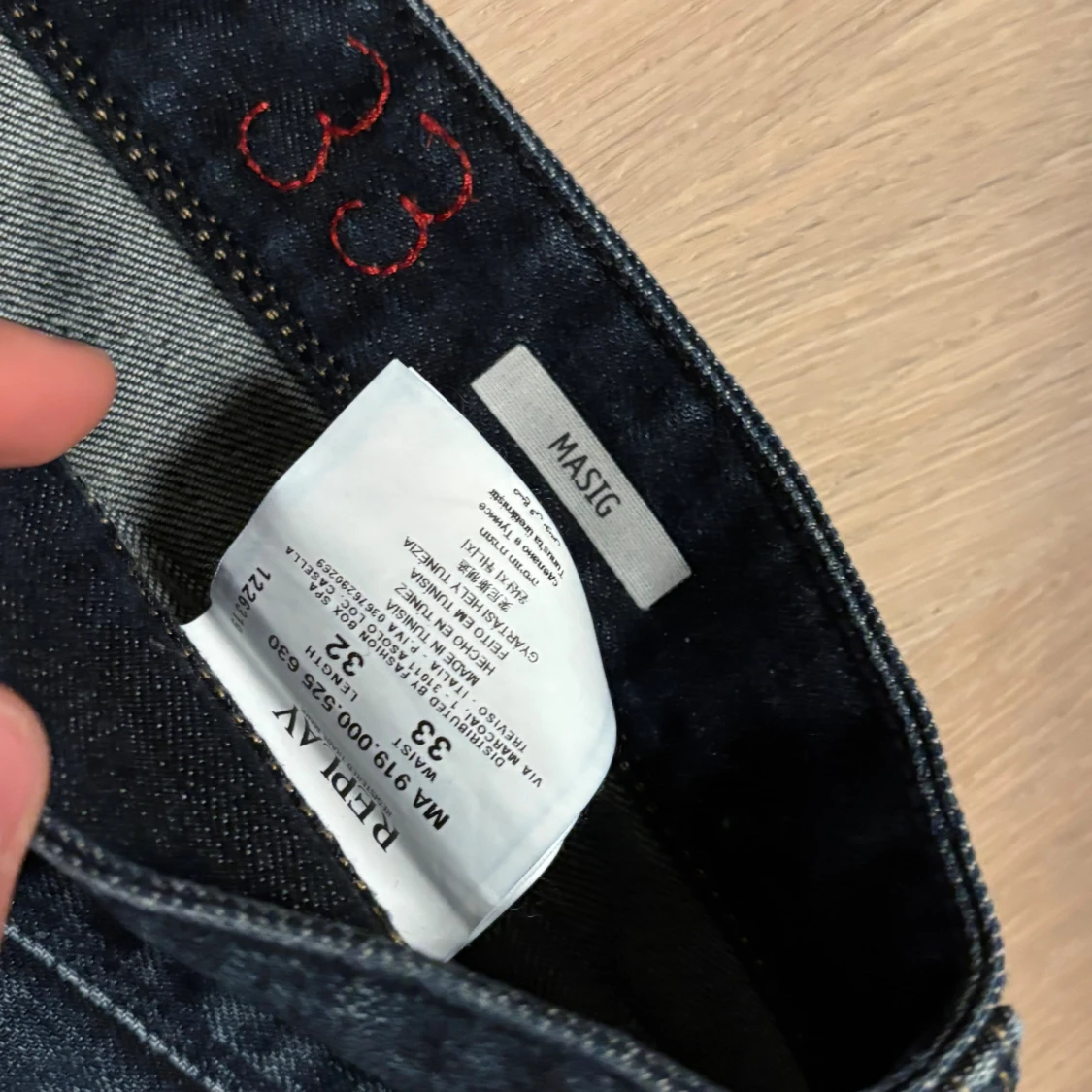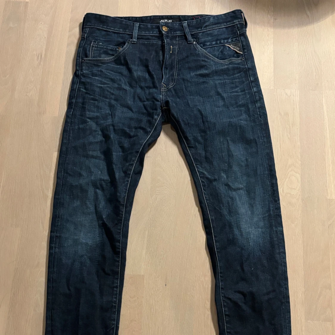 Snygga mörkblå jeans från Replay, modell MASIG. Klassisk femficksdesign med guldfärgad knapp och Replay-detalj på fickan. Jeansen har raka ben och är tillverkade i slitstarkt denimtyg. Perfekta för dig som gillar stilrena och tidlösa jeans.
